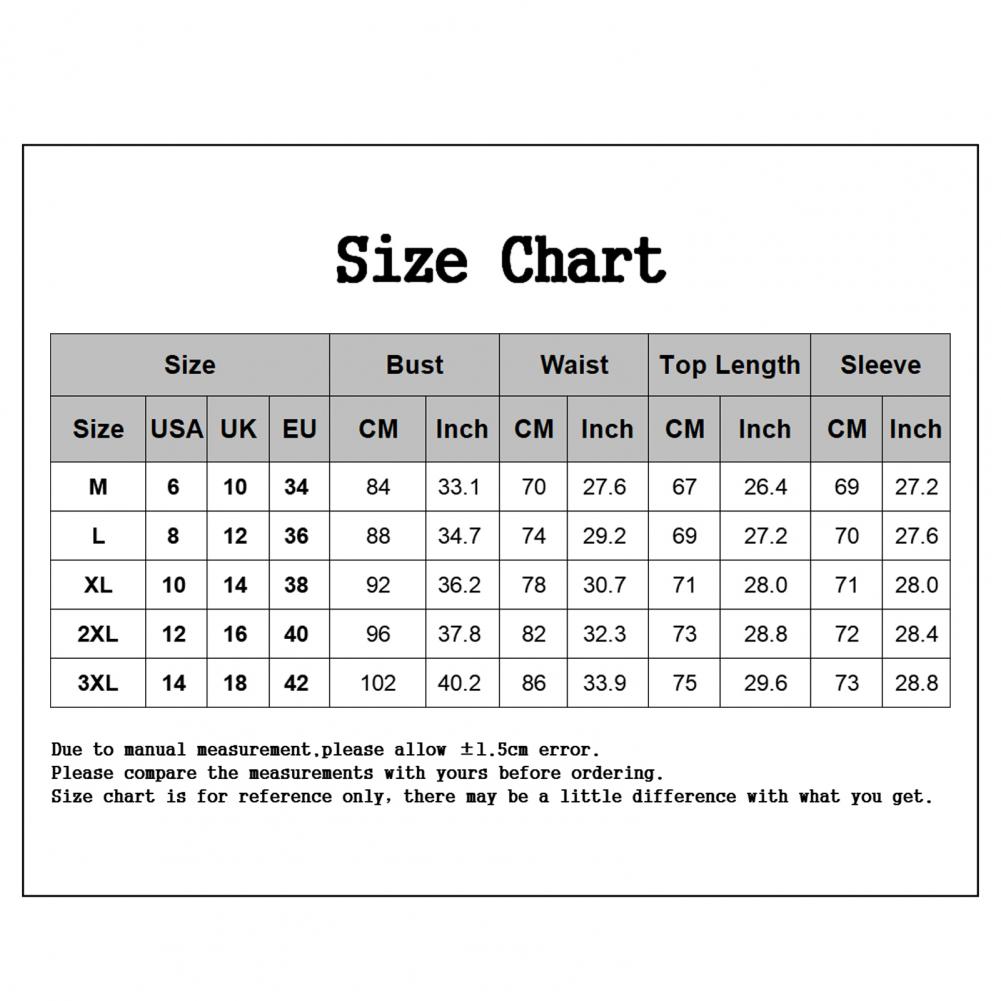 [Наш Размер 3XL] Обхват груди: 102 см/40,2 дюйма, обхват талии: 86 см/33,9 дюйма, длина рукава: 73 см/28,7 дюйма, длина: 75 см/29,5 дюйма (прибл.)