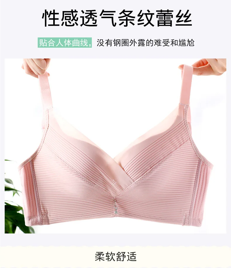 Женские Бюстгальтеры размера плюс, сетчатые дышащие полосатые кружевные бюстгальтеры пуш-ап с эффектом пуш-ап, нижнее белье без подклада A B C