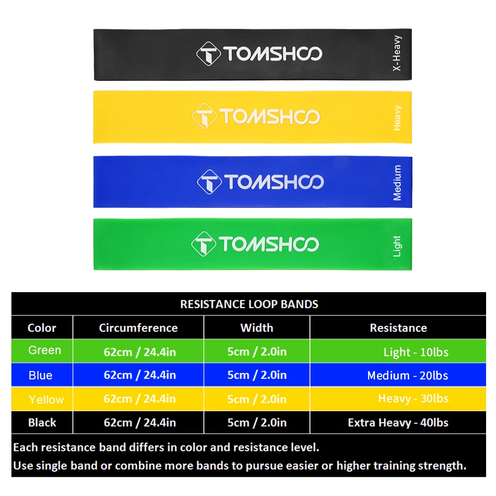 Набор лент TOMSHOO Pull Up включает в себя 5 лент для упражнений разных цветов и натяжения, которые позволяют использовать одно или несколько полос, чтобы бросить вызов различным уровням и достичь более высоких целей. С дверным якорем и ручками вы можете попробовать более интересные тренировки с помощью резинок сопротивления. Этот комплект компактно упакован в сумку для переноски, легкий и портативный, очень удобный для выполнения тренировочных процедур, где бы вы ни находились.
