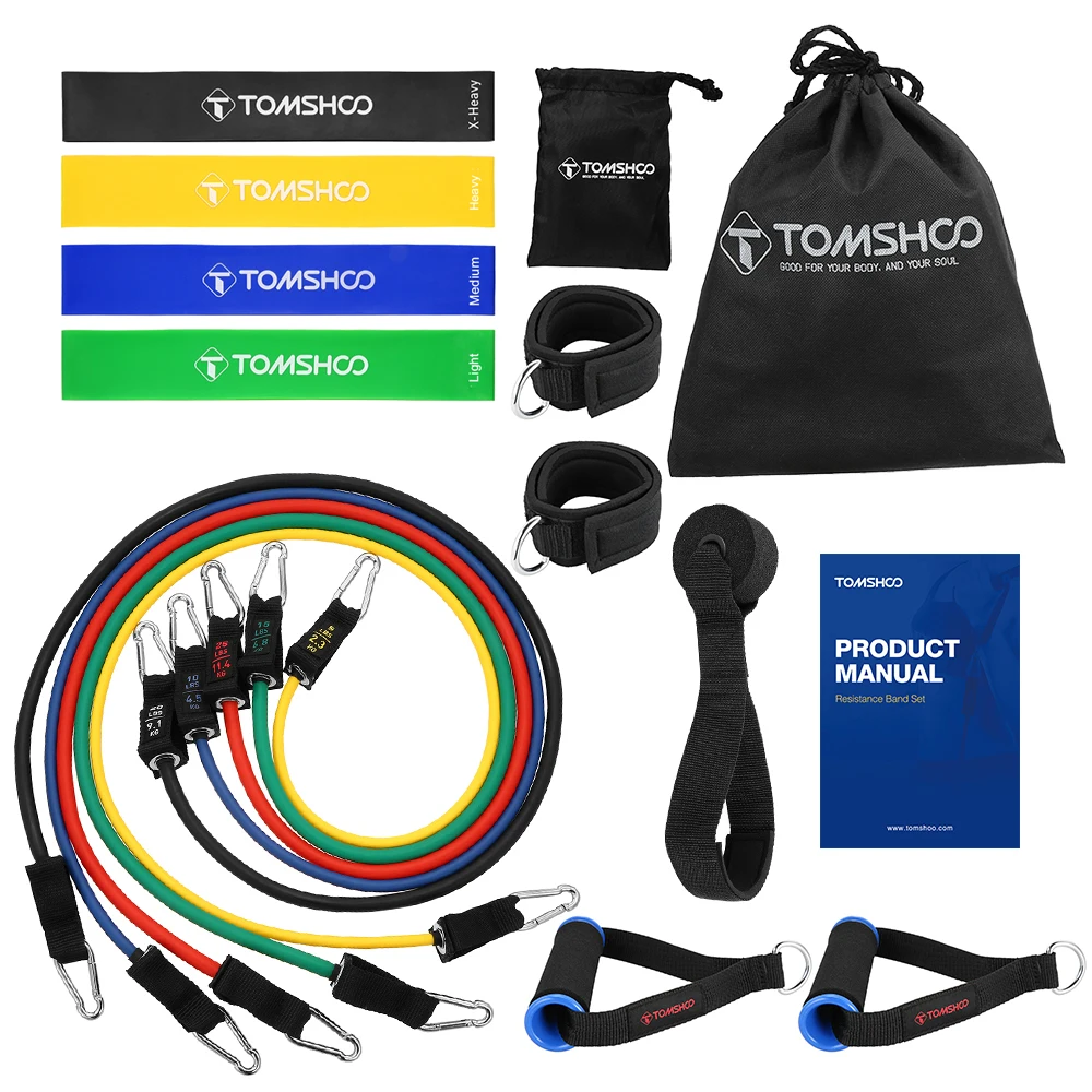 TOMSHOO 17 шт. набор фитнес-браслетов включает в себя 5 трубки ленты, 4 петли, 2 ручки, 2 якорных ремня, 2 сумки для переноски и 1 руководство пользователя, которые помогут изменить ваши тренировки и бросить вызов себе, чтобы достичь более высоких уровней. Резистивные ленты могут быть интегрированы плавно, чтобы улучшить вашу мышечную выносливость, прочность, баланс, гибкость, осведомленность о теле и координацию. Помимо бодибилдинга и сжигания жира, фитнес-набор также полезен для реабилитации травм, идеально подходит для начинающих специалистов. Благодаря компактному размеру и легкому весу набор для тренировок, несомненно, будет удобным и гарантирует гораздо более интересную поездку.