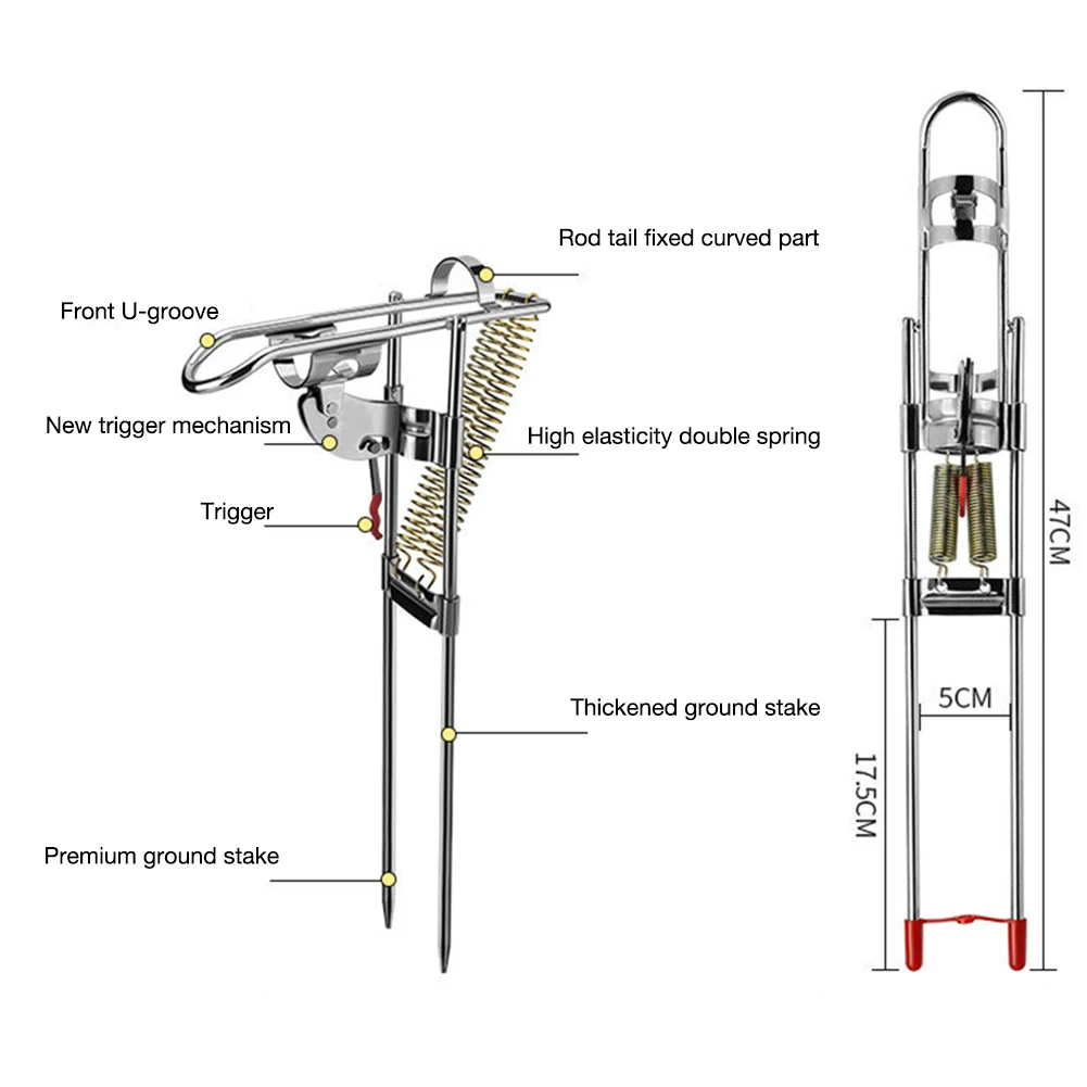1. Двойная пружина: саморегулирующийся держатель удочки с двойными пружинами используется для автоматического подтягивания удочки, когда она естественным образом поднимается к крюку для легкой рыбалки.1 * автоматический держатель удочки