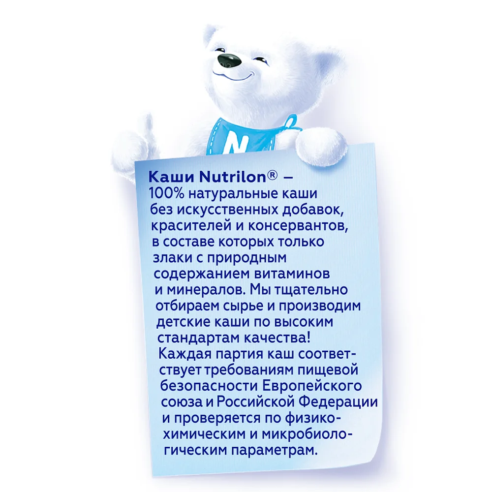 Каши Nutrilon – 100% натуральные каши без искусственных добавок, красителей и консервантов, в составе которых содержатся только злаки с природным содержанием витаминов и минералов. Мы тщательно отбираем сырье и производим детские каши по высоким стандартам качества! Каждая партия каш соответствует требованиям пищевой безопасности Европы и Российской Федерации и проверяется по физико-химическим и микробиологическим параметрам.