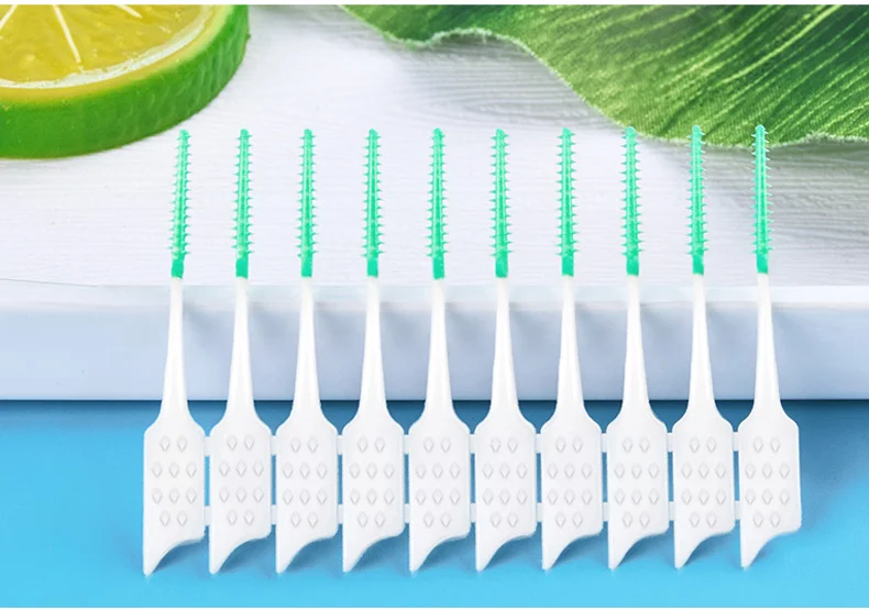 * Силиконовые Мягкие межзубные зубочистки имеют мягкие и удобные щетинки, которые могут аккуратно удалить зубной налет, чистую еду и массажные десны. Мягкие силиконовые щетинки легко вставляются в большинство зубов, тем самым устраняя налет, который часто возникает при болезни десен и не может быть тронут зубной щеткой. Таким образом, это определенно идеальный инструмент для чистки полости рта для вас и вашей семьи, вы должны иметь!