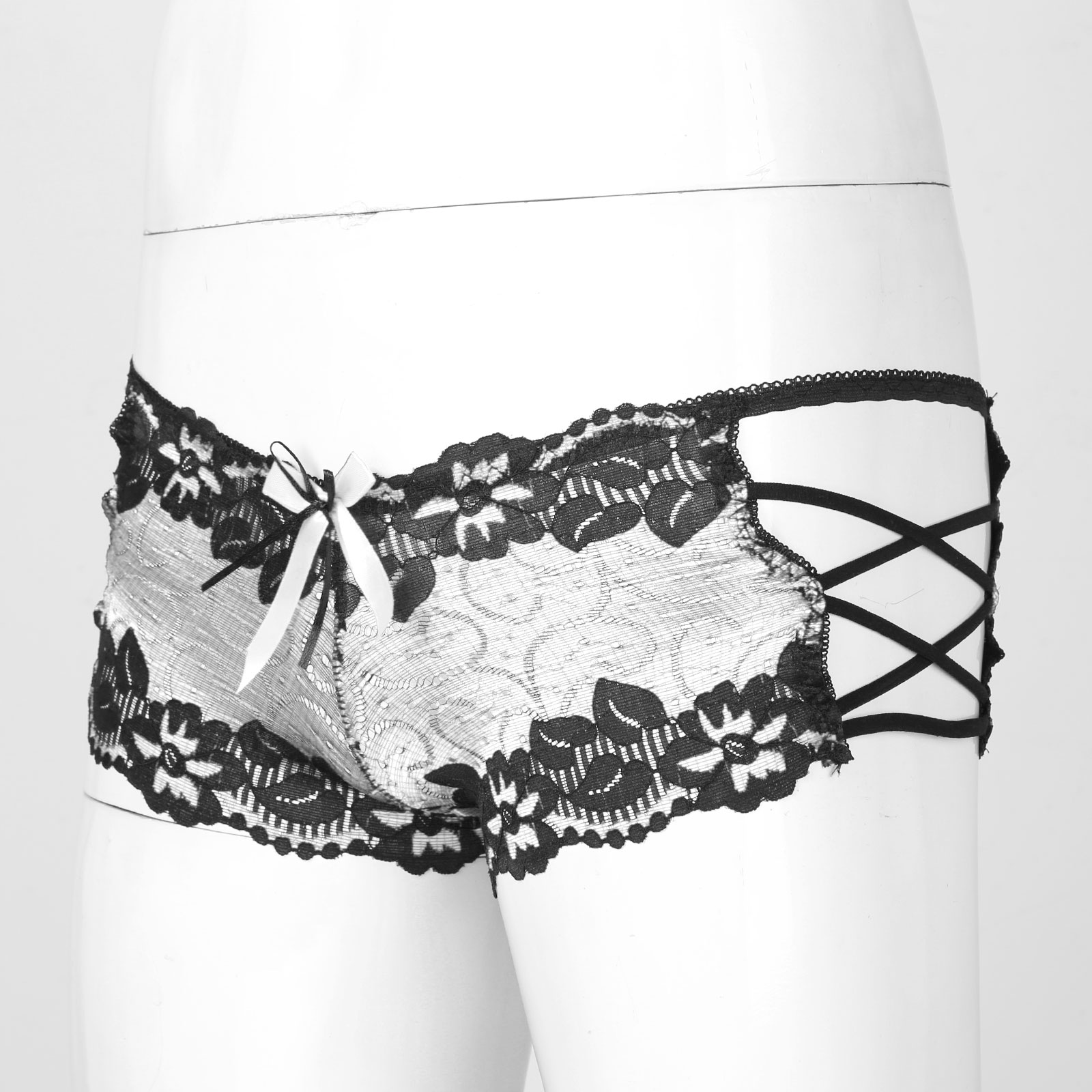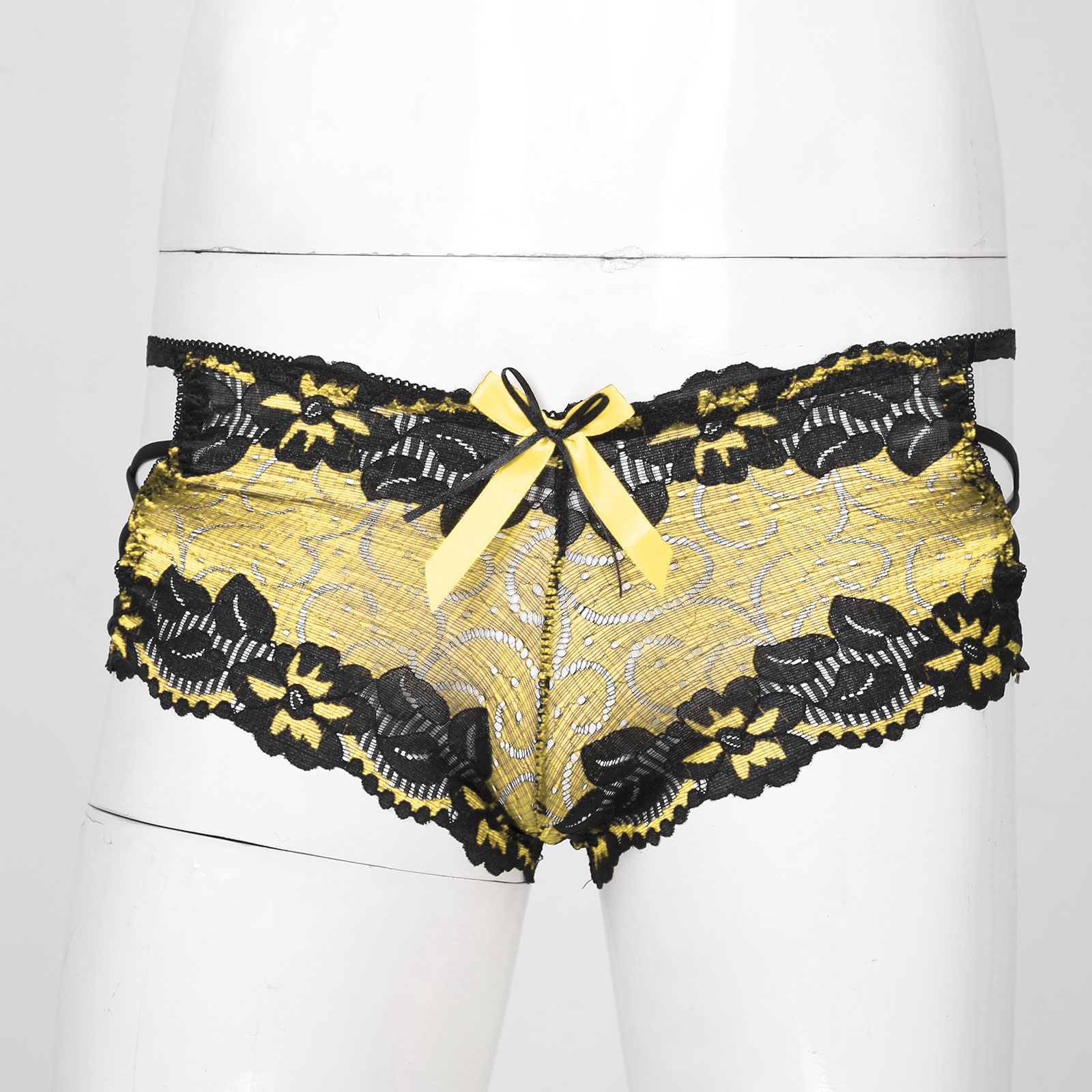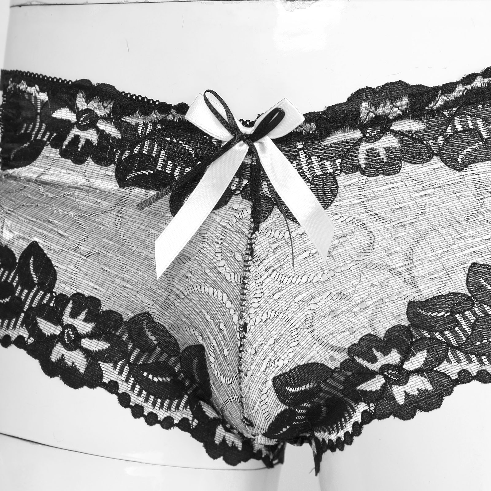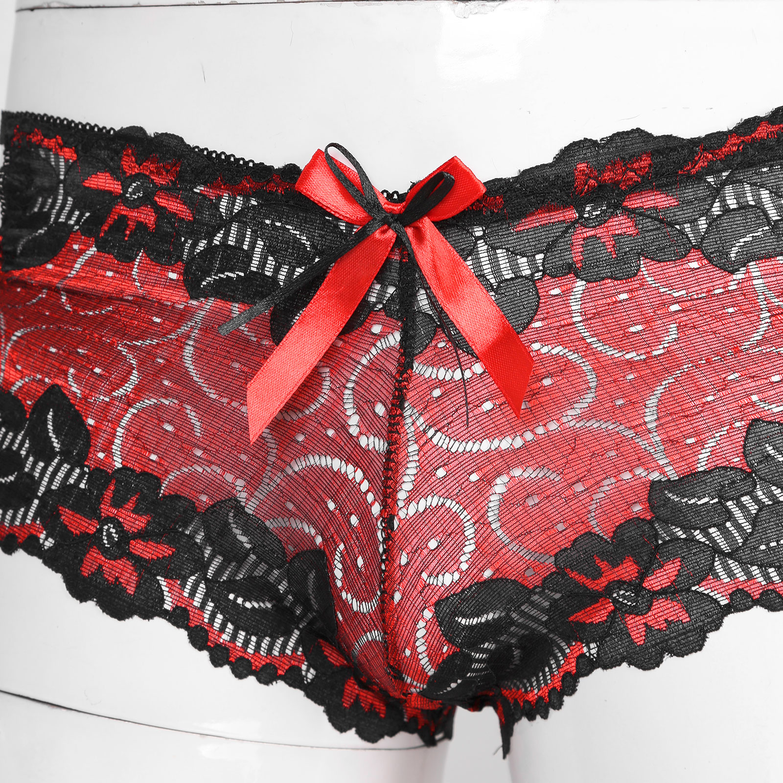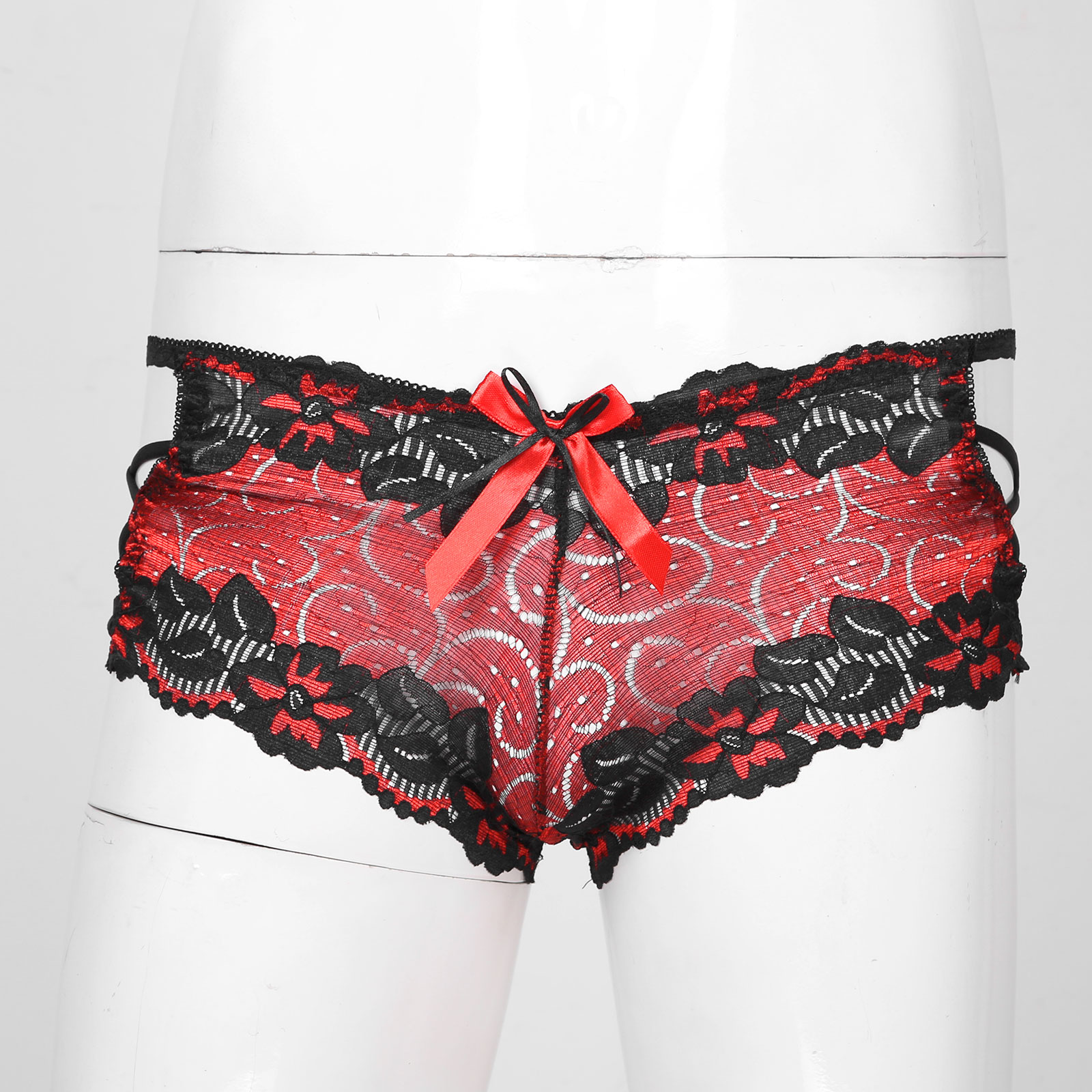 Мужские с низкой посадкой кружевные трусы с бантом, ажурное неженское нижнее белье, боксеры на бретелях, трусы.