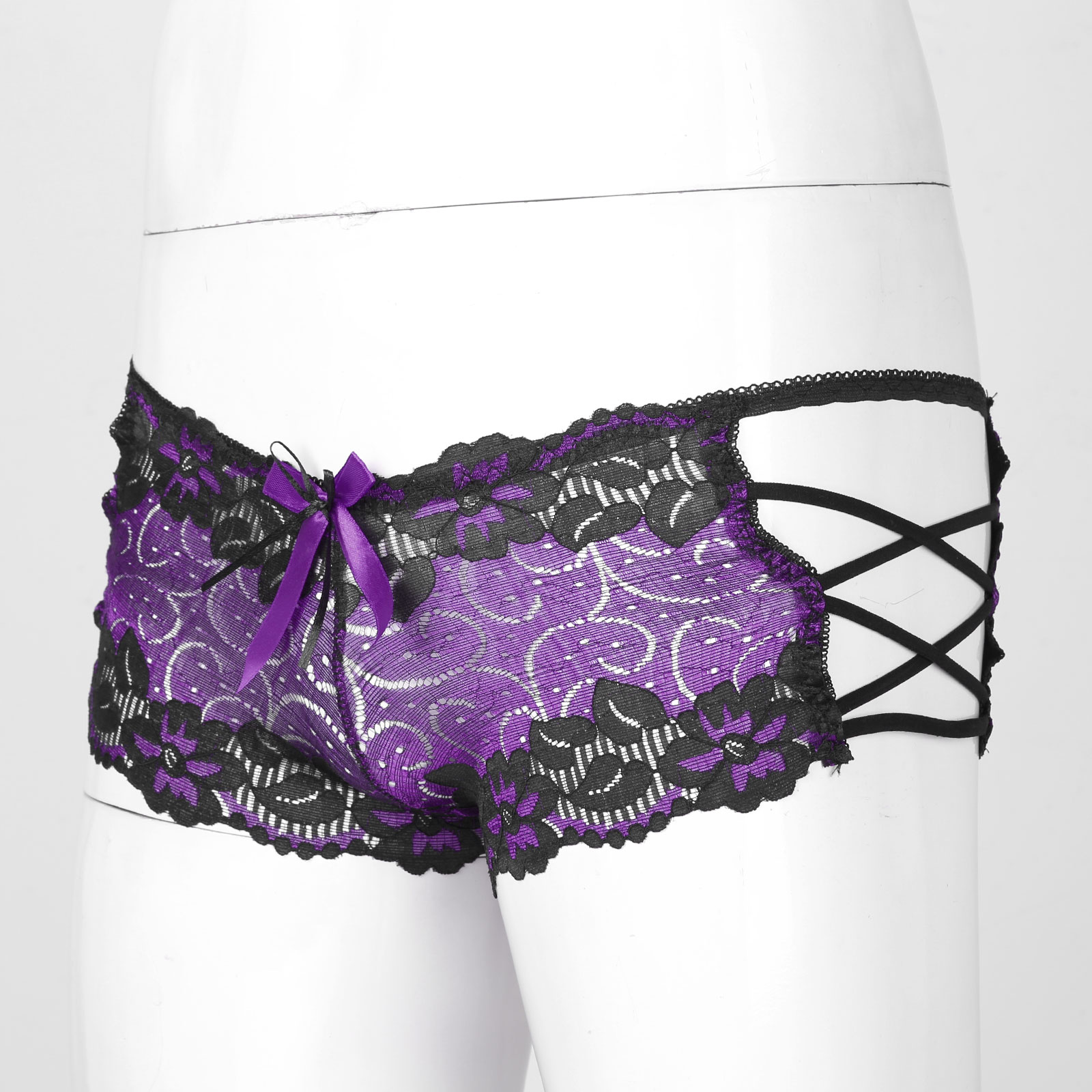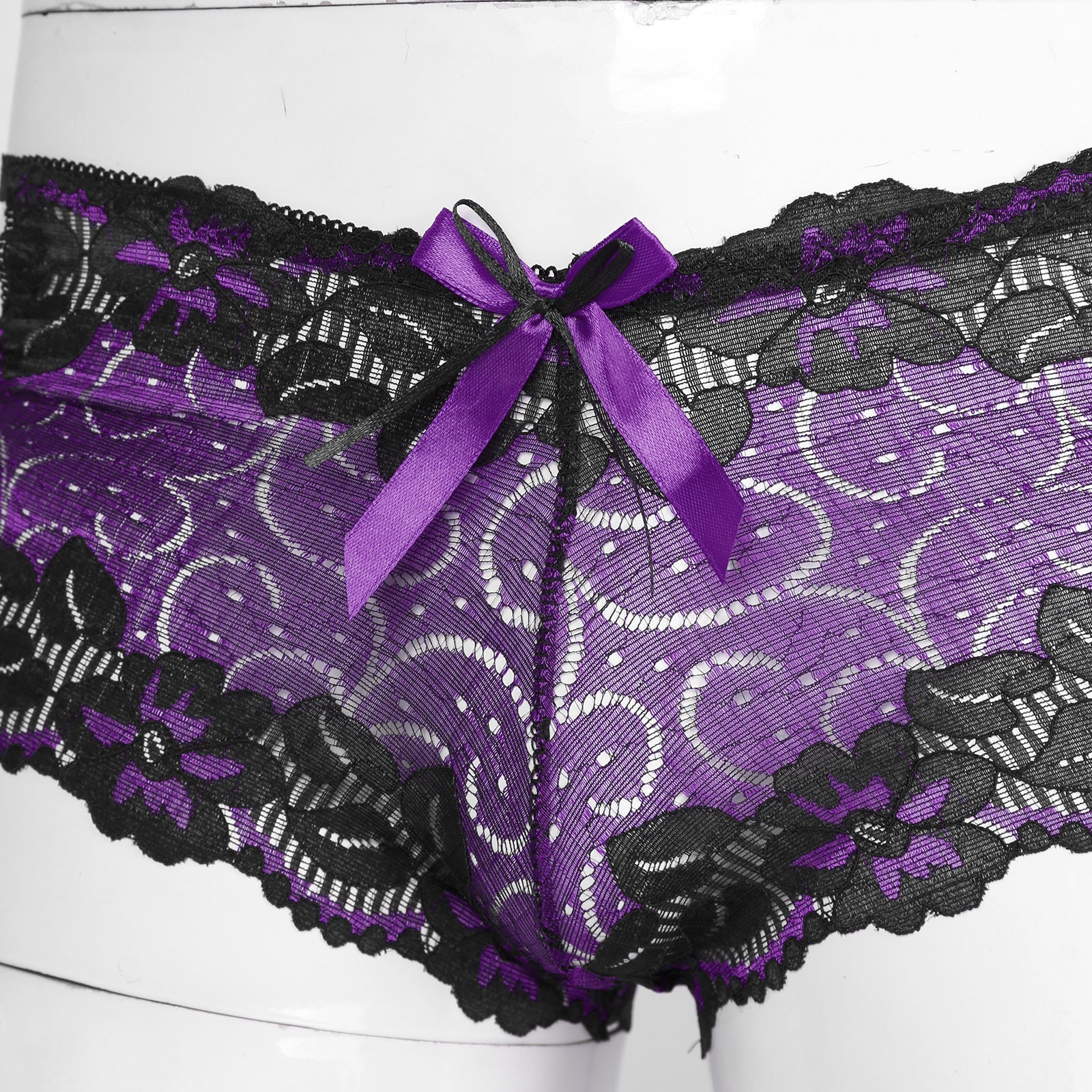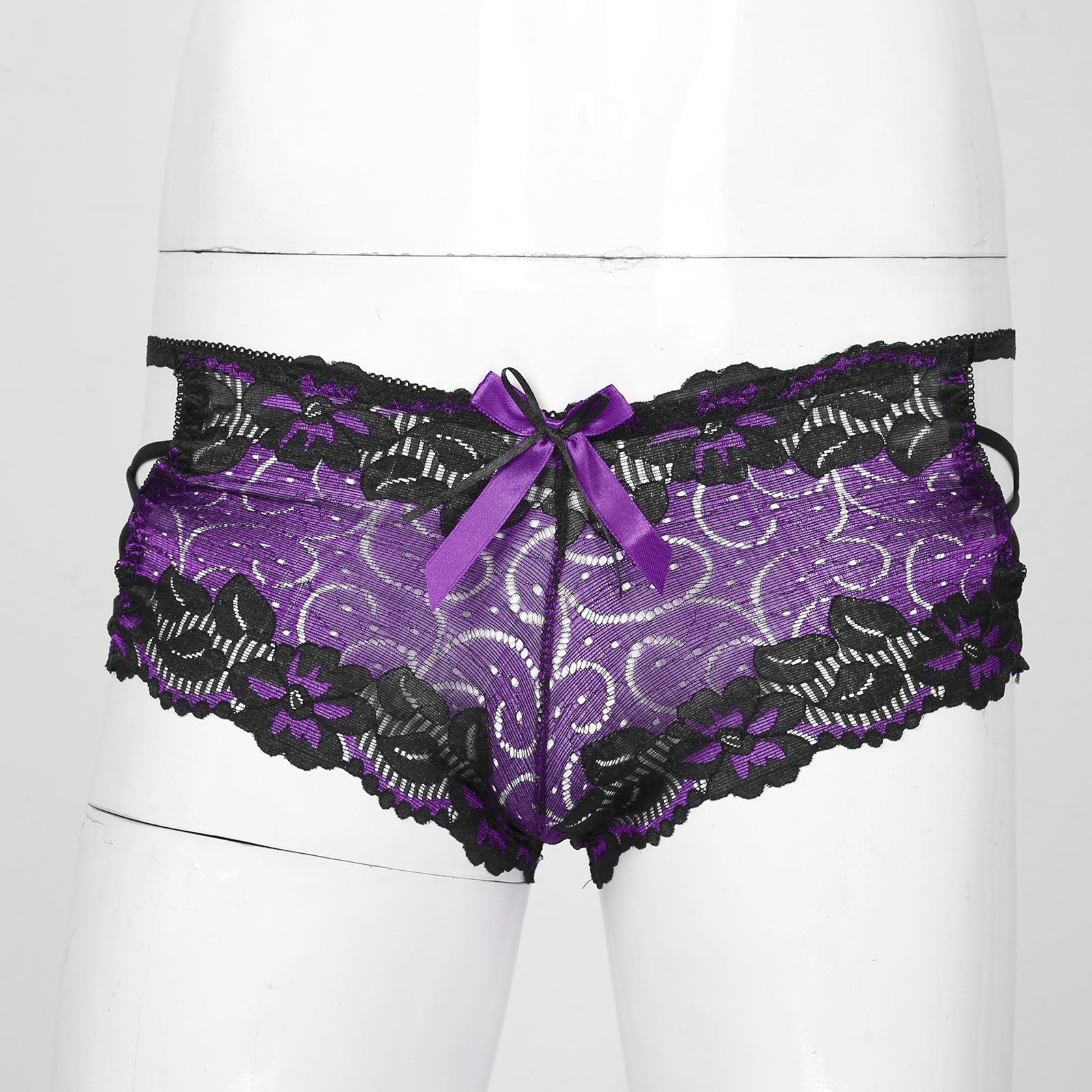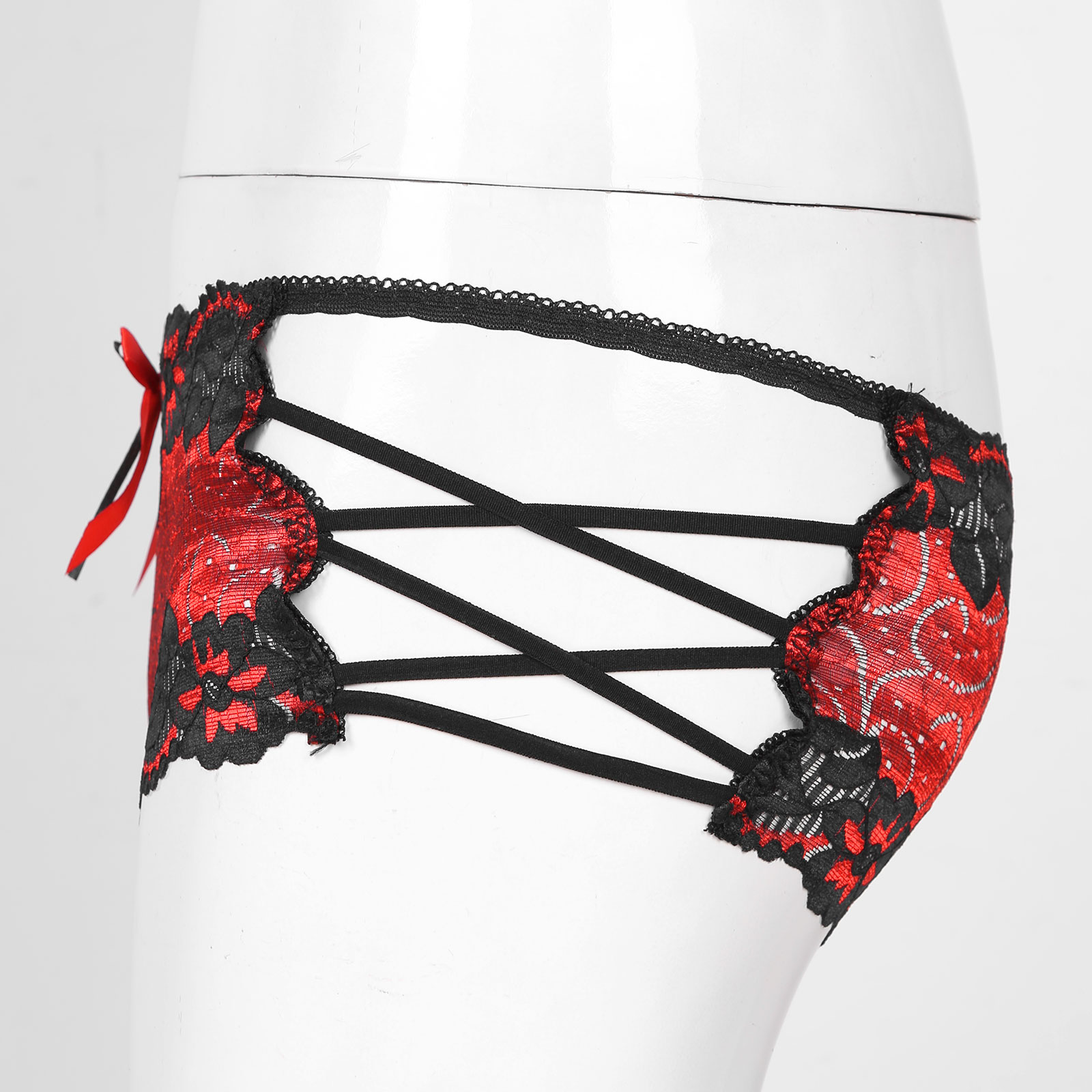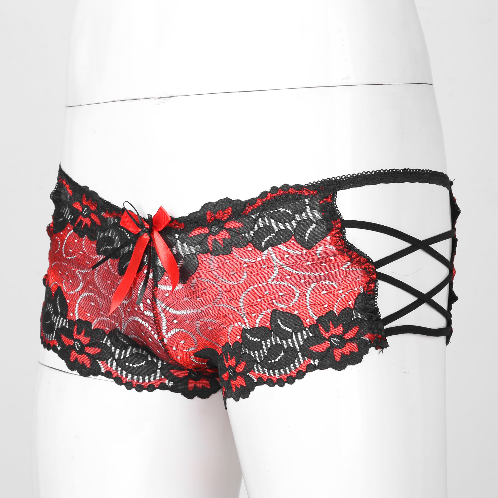 Мужские с низкой посадкой кружевные трусы с бантом, ажурное неженское нижнее белье, боксеры на бретелях, трусы.