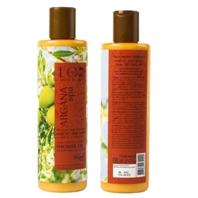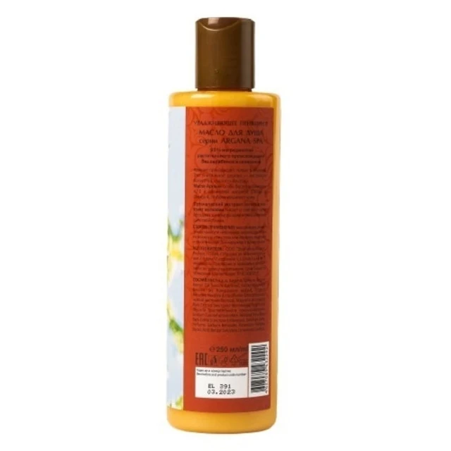 Увлажняющее пенящееся масло для душа "Гладкость и упругость кожи" содержит 95% ингредиентов растительного происхождения. Без парабенов и силиконов.