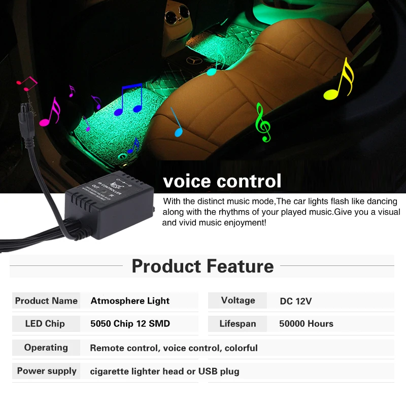 7. Беспроводное инфракрасное управление, вы хотите изменить цвет. Он также имеет режим управления музыкой, чтобы сделать ваш автомобиль более привлекательным.