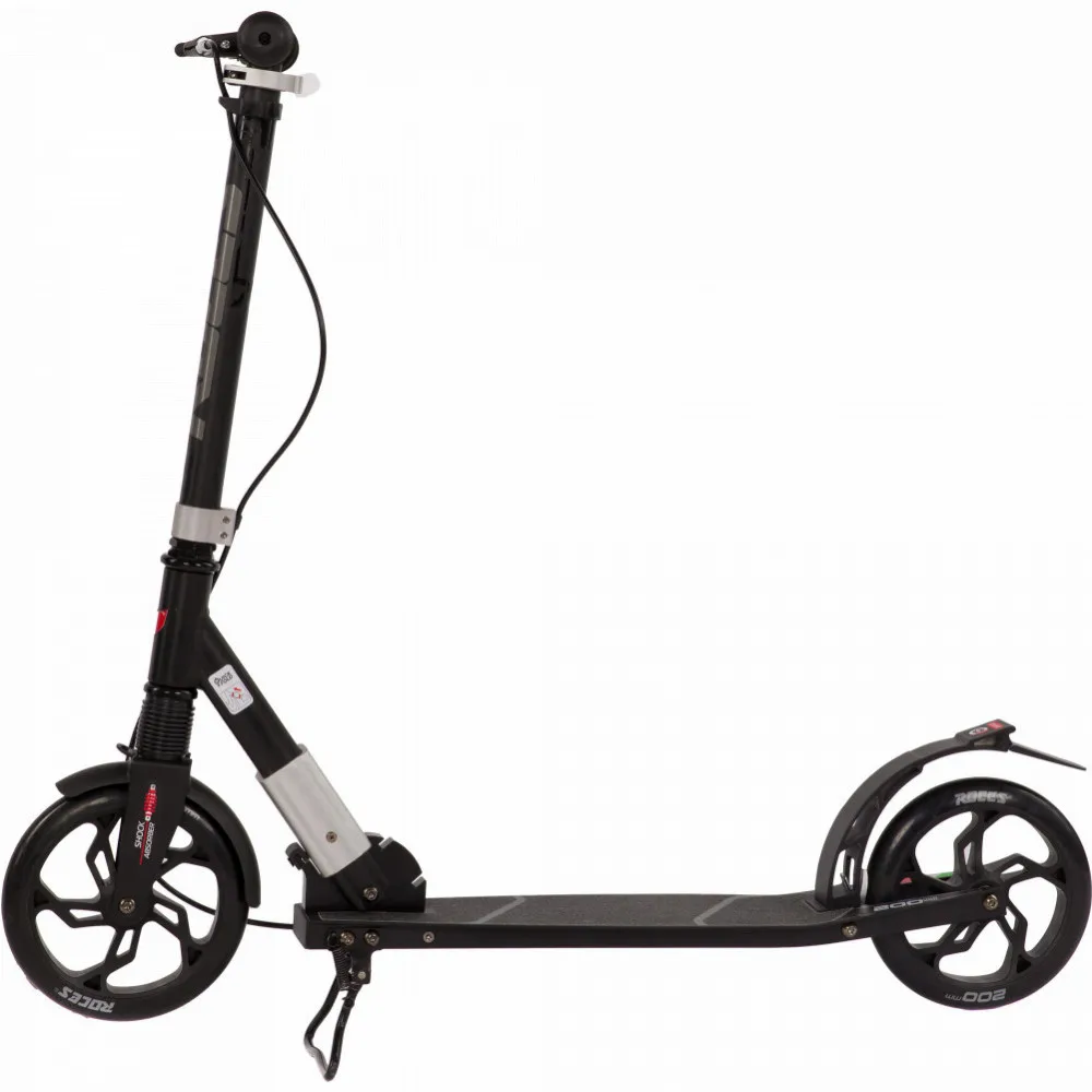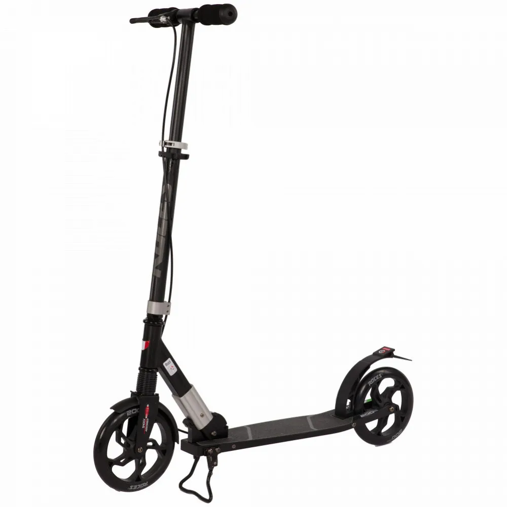 Детали: диаметр колес — 200 мм, подшипники ABEC 7, бесступенчатая регулировка руля, встроенная подножка, максимальный вес пользователя — 100 кг.