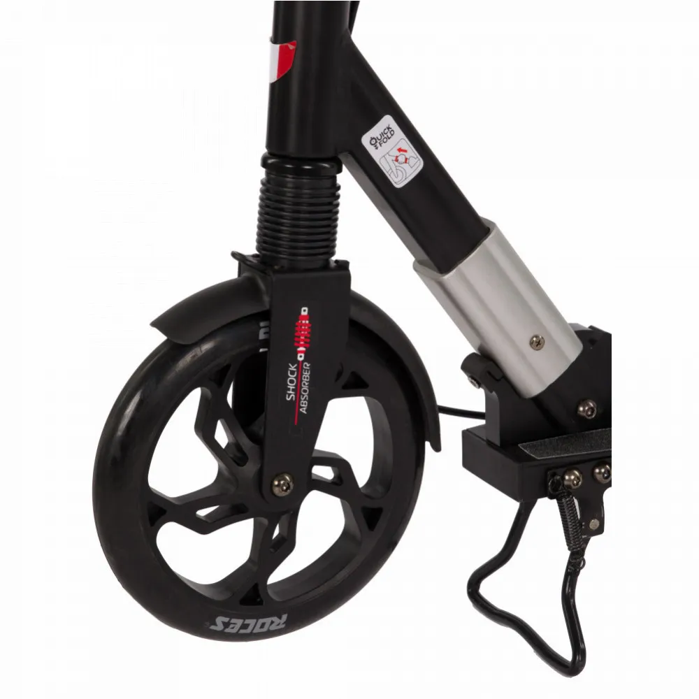 Складной самокат с алюминиевой рамой. Конструкция Quick Fold позволяет складывать самокат одним движением.