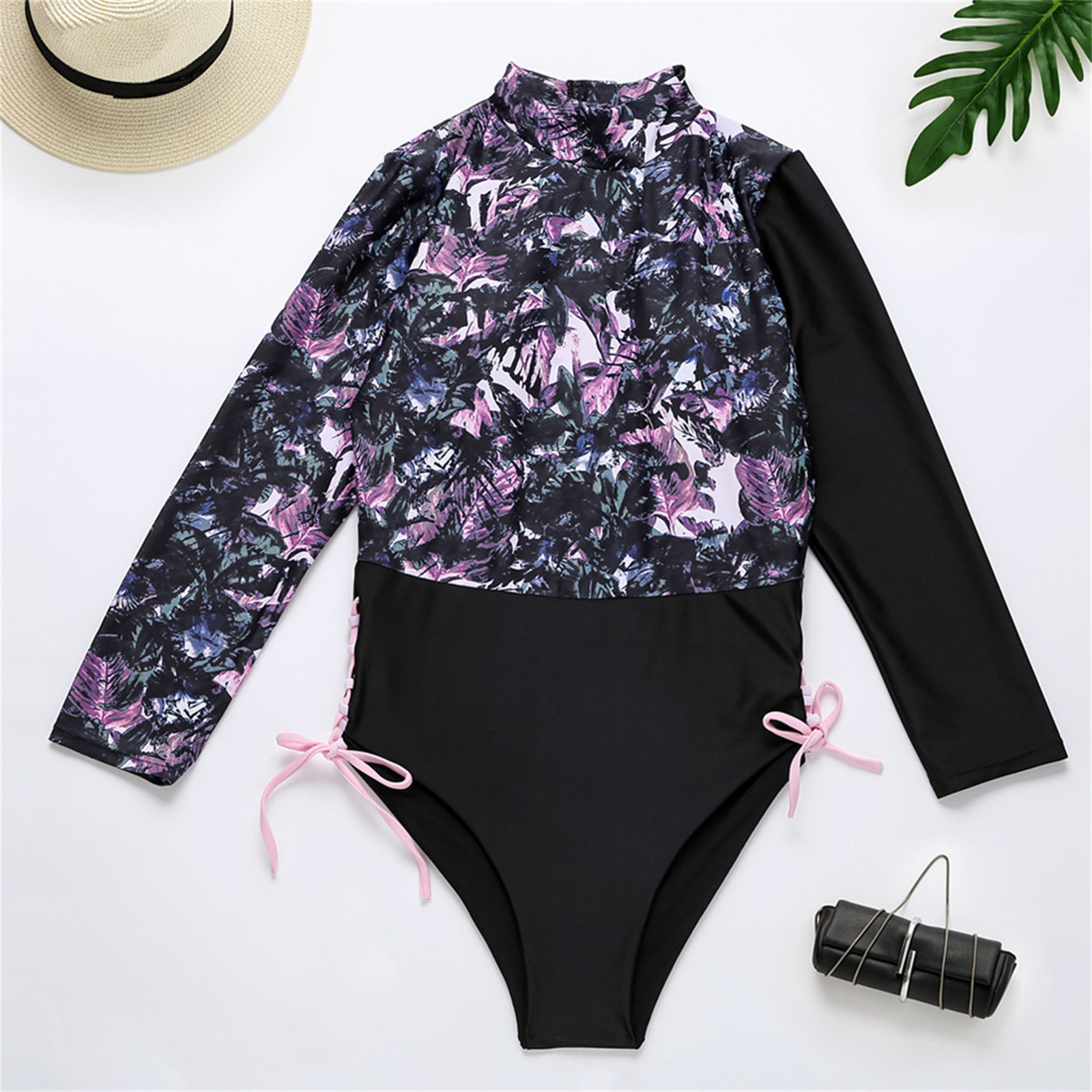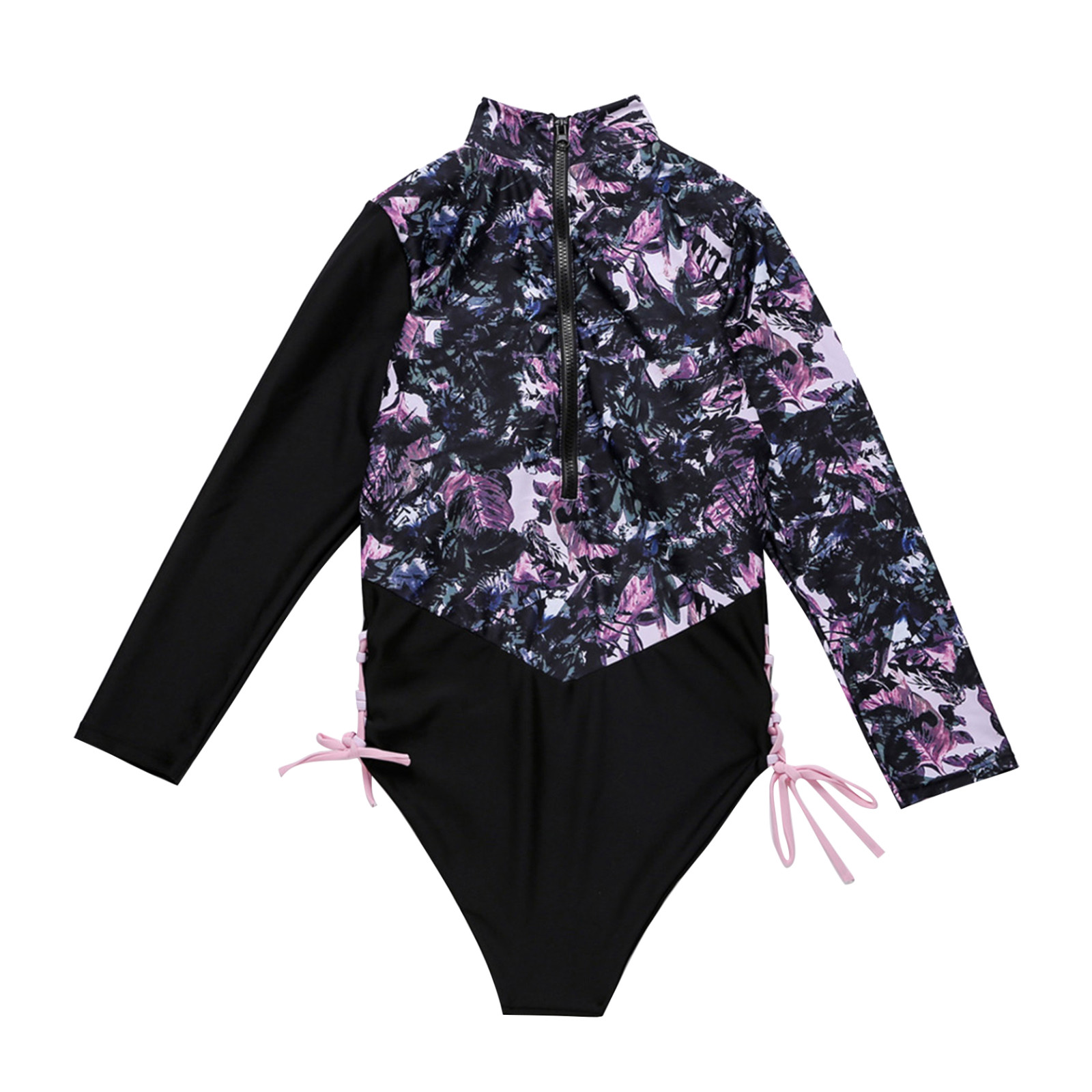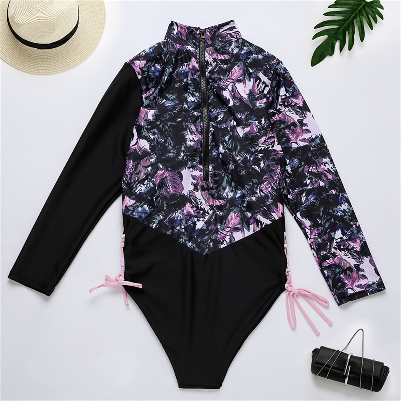Женское боди на молнии с длинным рукавом и принтом, Солнцезащитный цельный купальник для дайвинга, серфинга, плавания, Comfortable с нагрудным подкладом, удобный F4