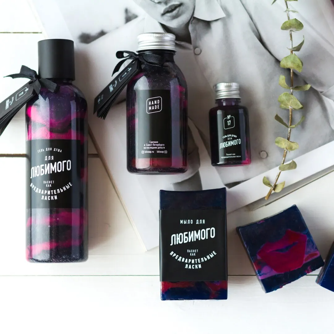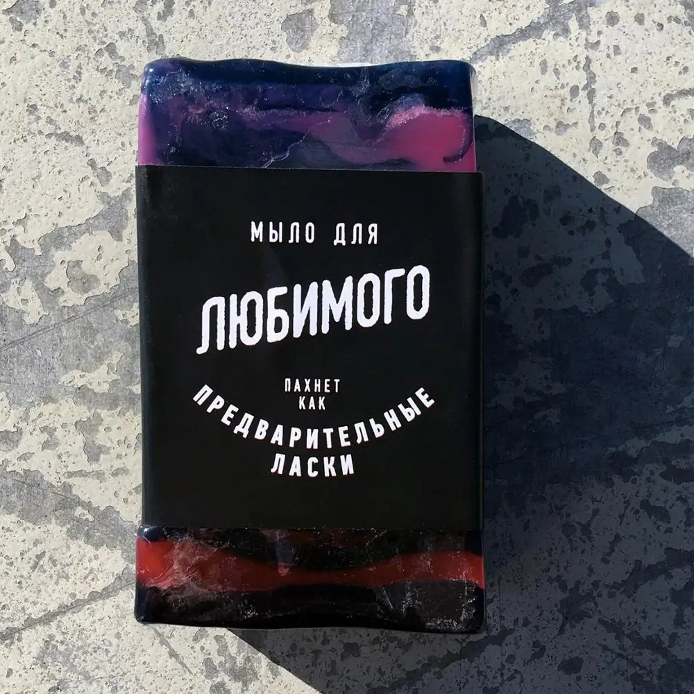 Дизайнерское мыло ручной работы для мужчин. Выглядит как сплетение темно-синих и нежно розовых узоров вокруг отпечатка страстных женских губ. Аромат: «Opium» от Yves Saint Laurent