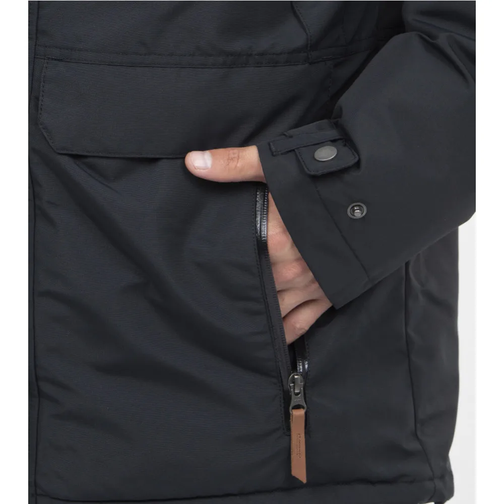 Пуховик-парка с мембраной Omni-Tech и проклеенными швами для защиты от ветра и осадков.