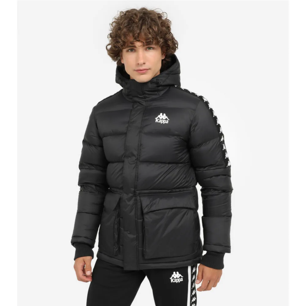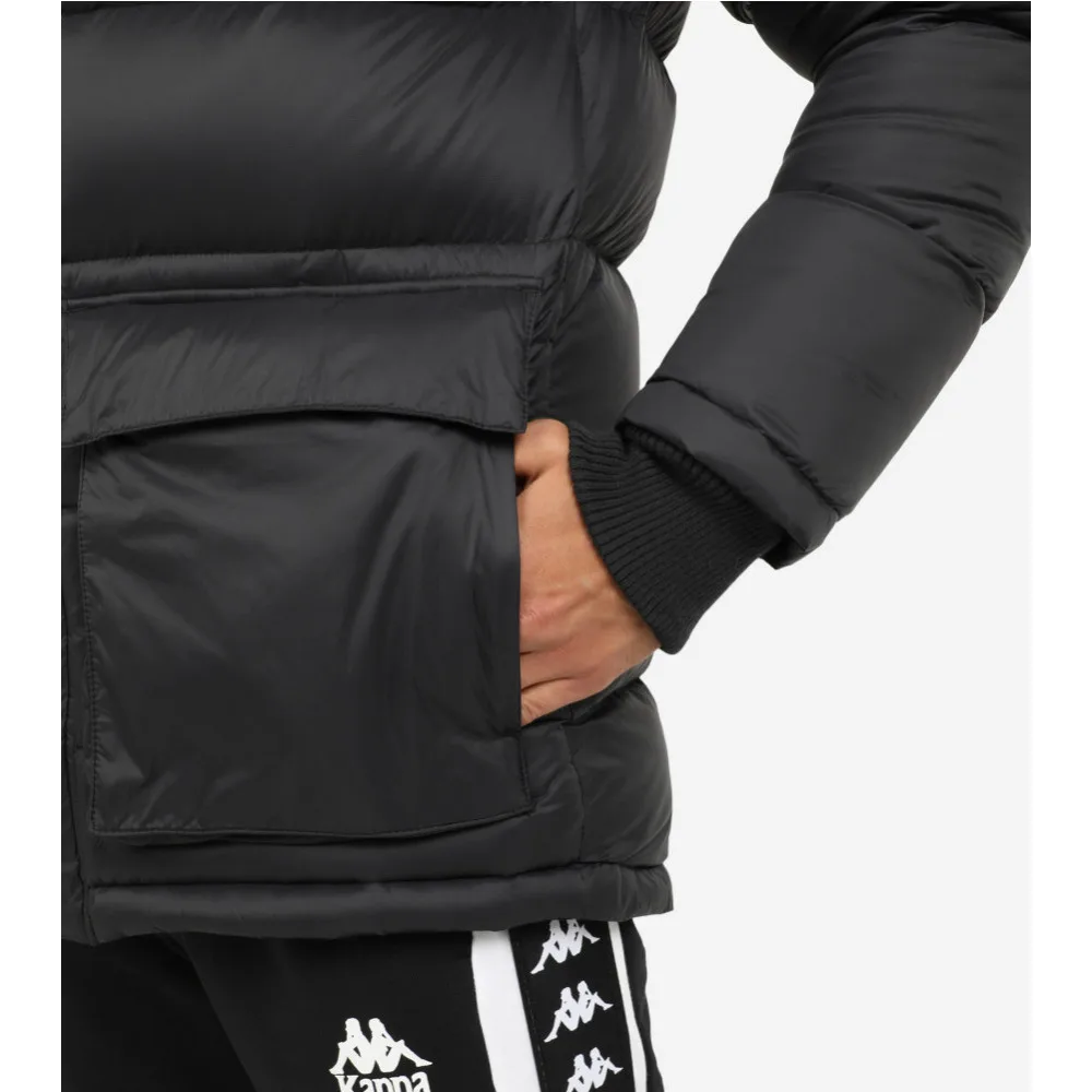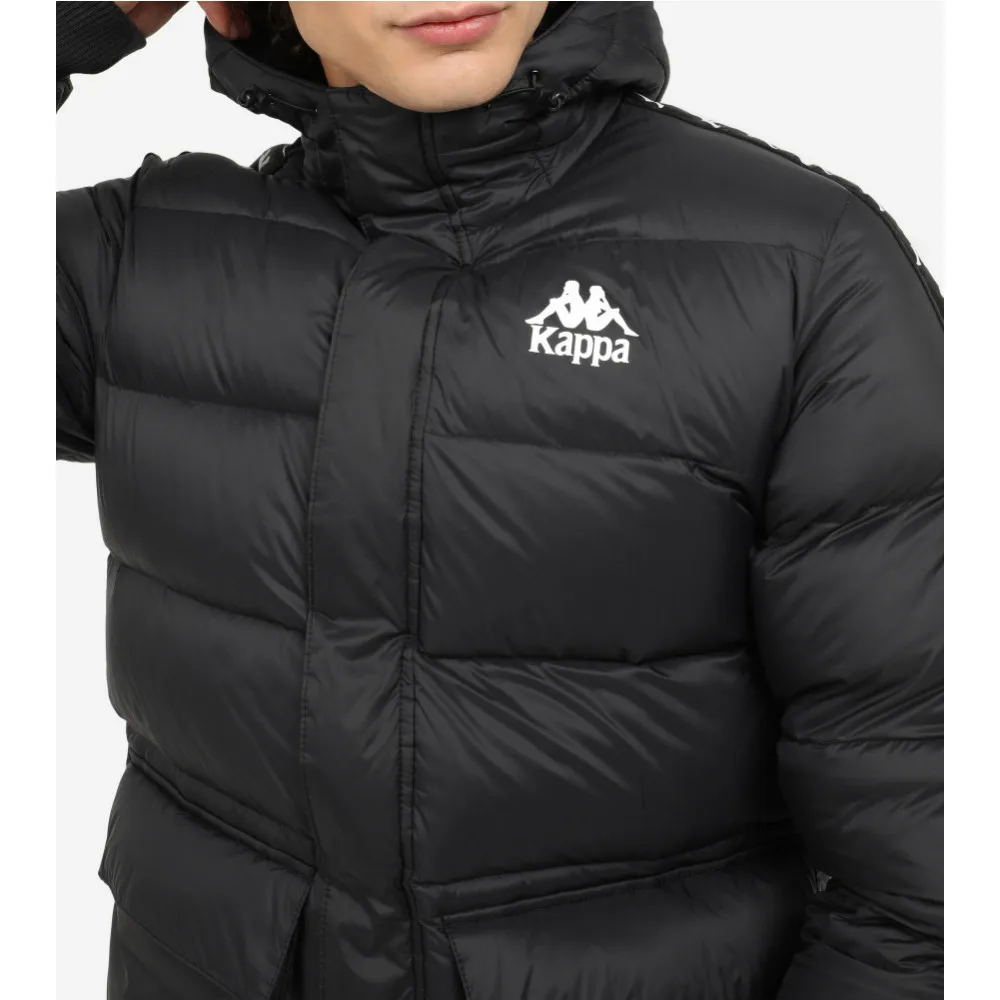 Пуховик с верхом из нейлона с влагоотталкивающей пропиткой.