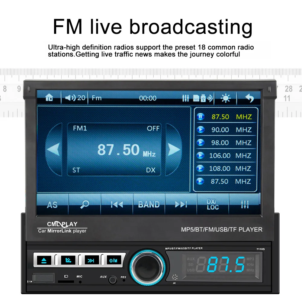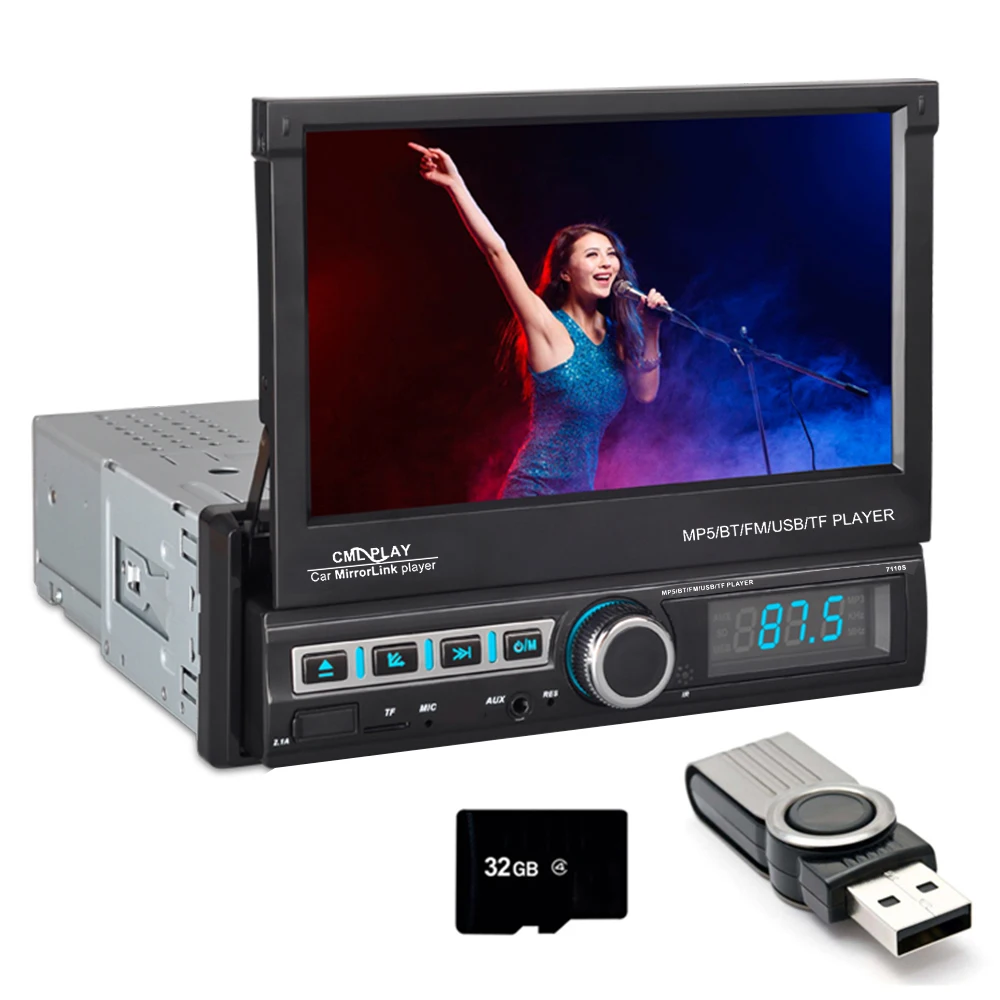 7 ''большой экран один Din автоматический телескопический емкостный складной сенсорный экран, короткий корпус, светильник, мгновенный отклик, не затухание