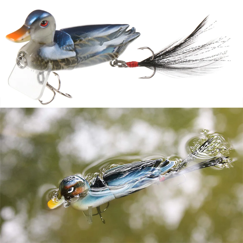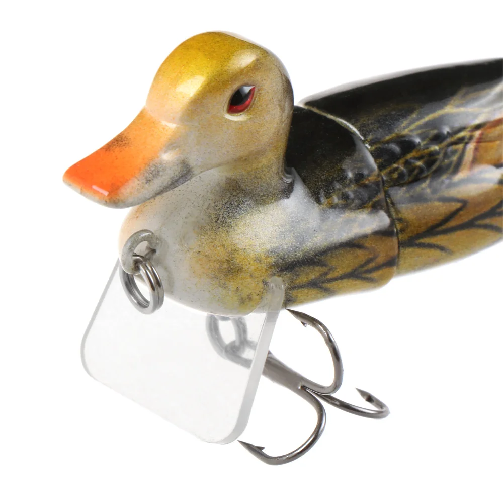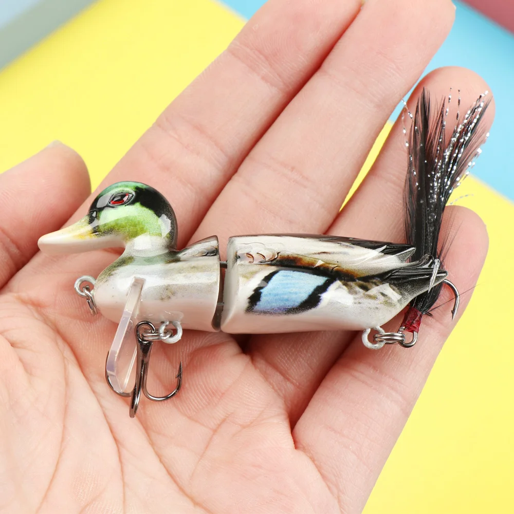 Приманка закончена 3d-уткой и сверхреалистичной работой с краской. Лазерная Реалистичная утка с блестящими цветами, которые отражают светильник, чтобы привлечь рыб. Встроенный небольшой металлический кусок удерживает приманки в равновесии и обеспечивает достойное расстояние отливки.