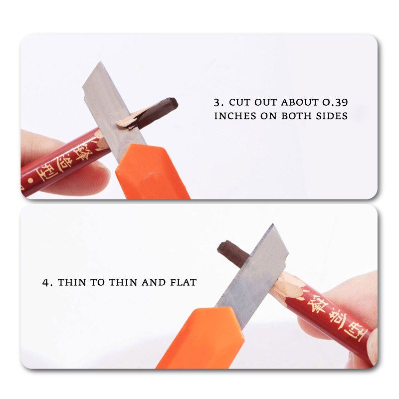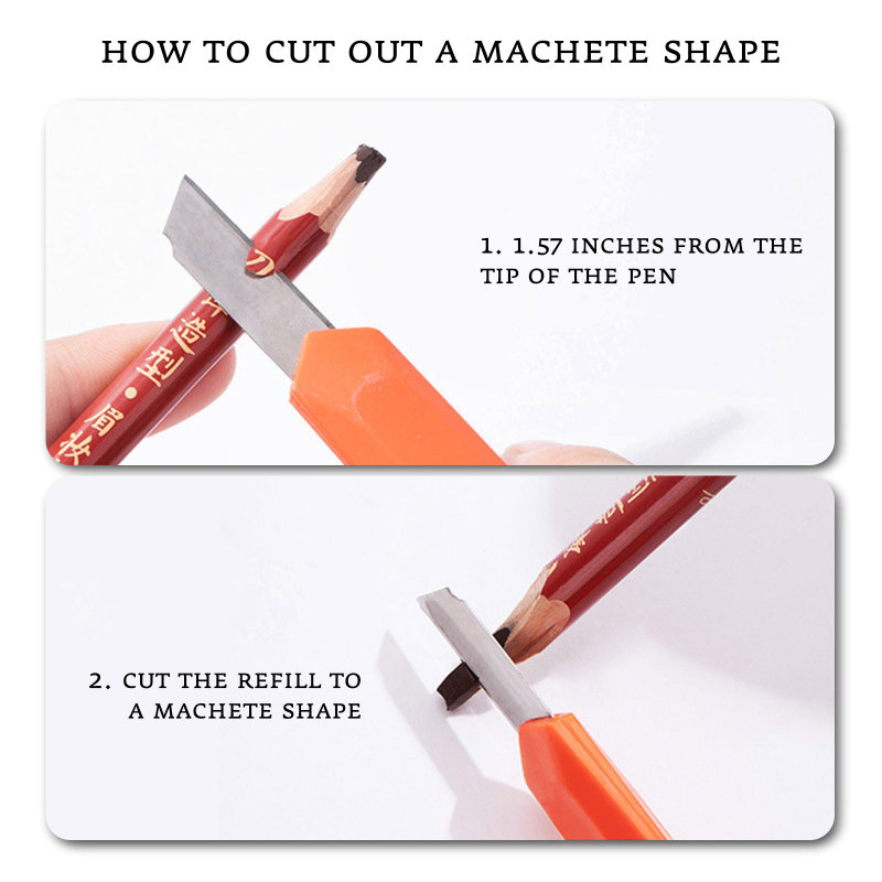 2. Cut the face with a machete, use the edges and corners of the eyebrow pencil to finely outline. The functions of the flat section and the side are also different