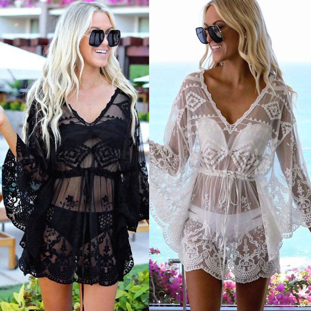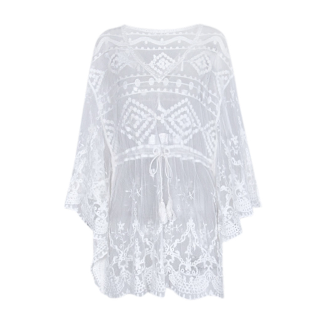 Женское пляжное платье-бикини с кружевной сеткой и вышивкой, Пляжное Платье для отдыха
