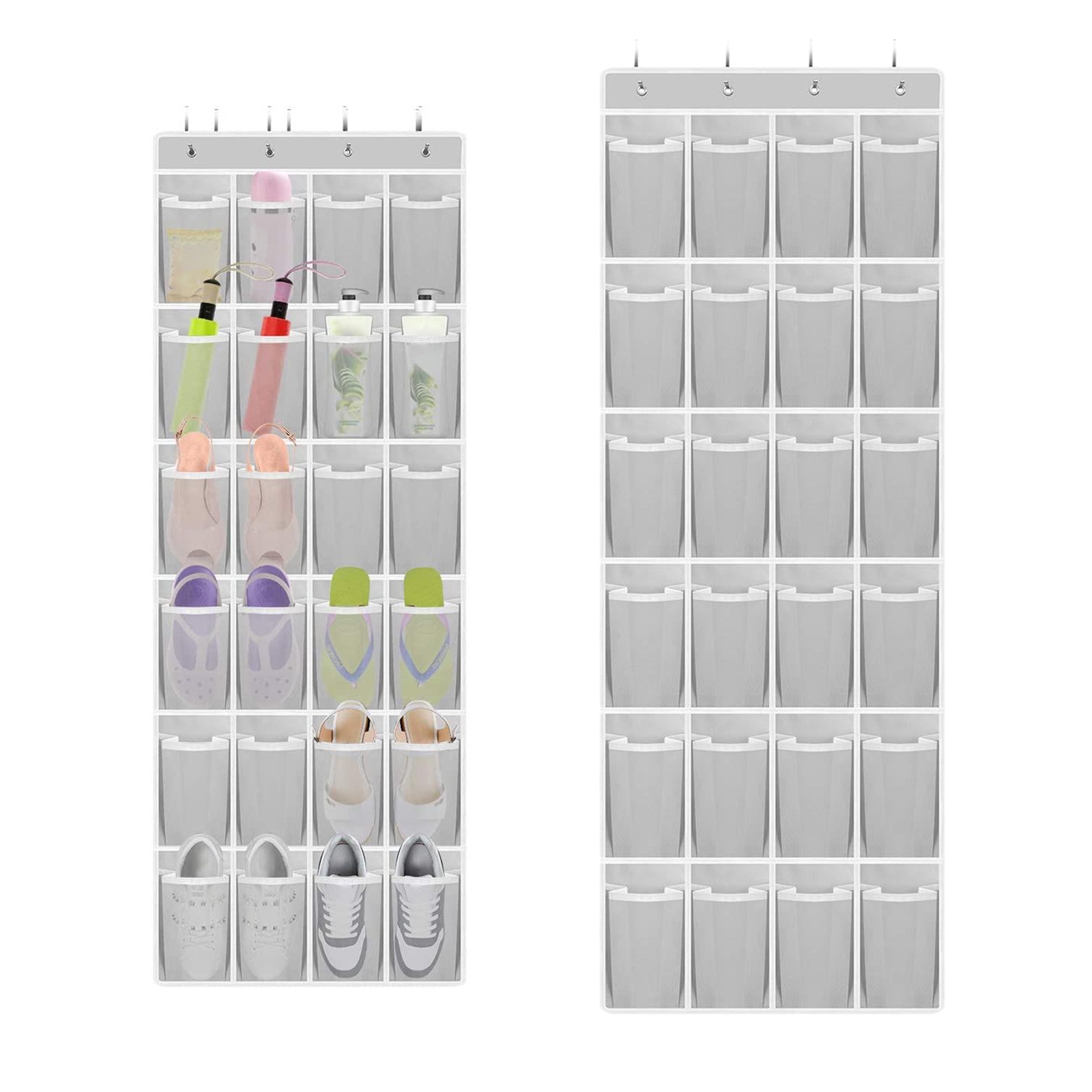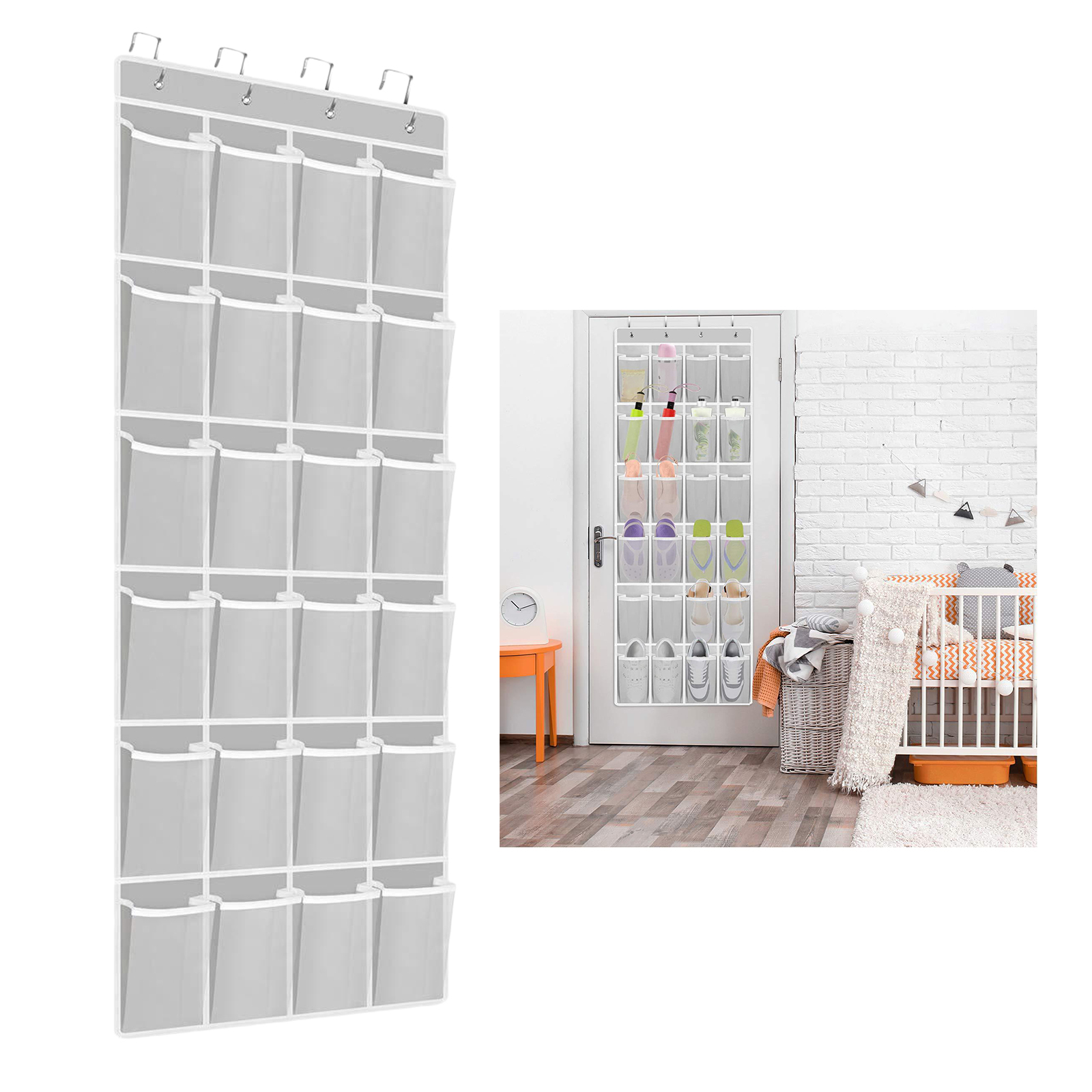 24 сетчатых кармана настенный органайзер для обуви, с 4 подвесными крючками, можно повесить в спальне, шкафу, ванной, общежитии и так далее, чтобы обеспечить аккуратную и аккуратную домашнюю среду