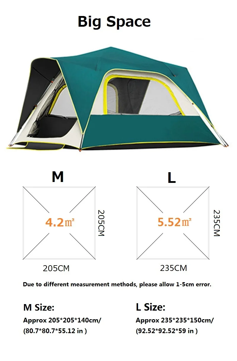 Новинка 3-5 человек автоматическая палатка для кемпинга виниловая анти-УФ двухслойная Водонепроницаемая Легкая установка для походов на открытом воздухе большая палатка для путешествий 3 сезона