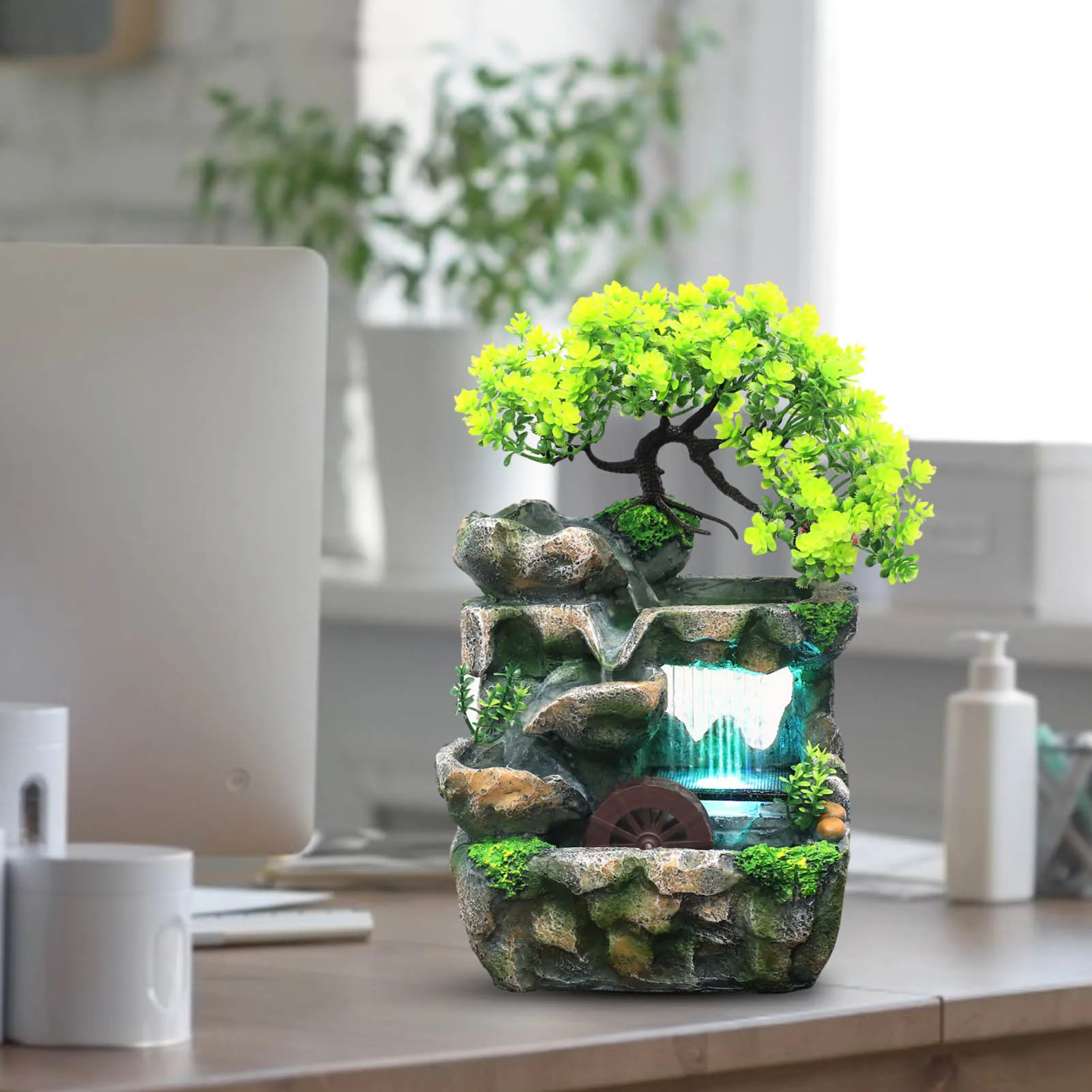 Изысканный фонтан с водопадом, Ландшафтная модель, настольный фонтан Без распылителя, можно сажать суккуленты для украшения дома