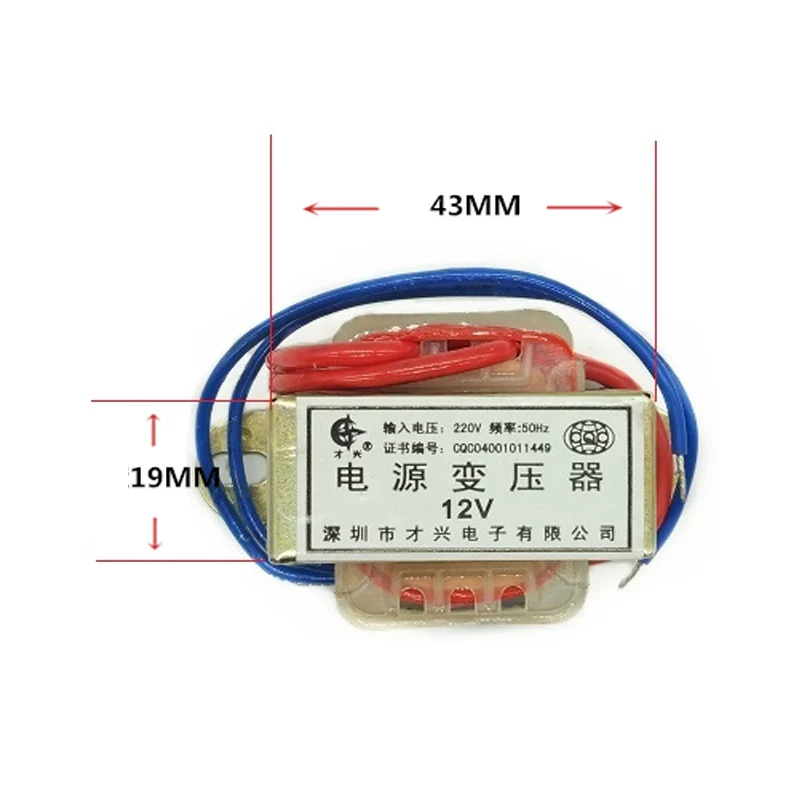 CQC,CCC,CE совместимый Название продукта: трансформатор Входное напряжение: 220 В переменного тока Выходное напряжение: 6 В/9 В/12 В/15 В/18 в/24 В Частота: 50 Гц-60 Гц Мощность: 3 Вт Размер изделия: 43*19*37 мм (Д * Ш * В) (Размер, пожалуйста, обратитесь к картинке) Частотная характеристика: низкая частота Структурный Стиль: монофазный трансформатор Одиночное напряжение, вход 2 провода, выход 2 провода; Двойное напряжение, вход 2 провода, выход 3 провода. Примечание: Красный провод-входной провод, синий провод-выходной провод. Посылка включает в себя: 1 шт. в соответствии с вашим выбором