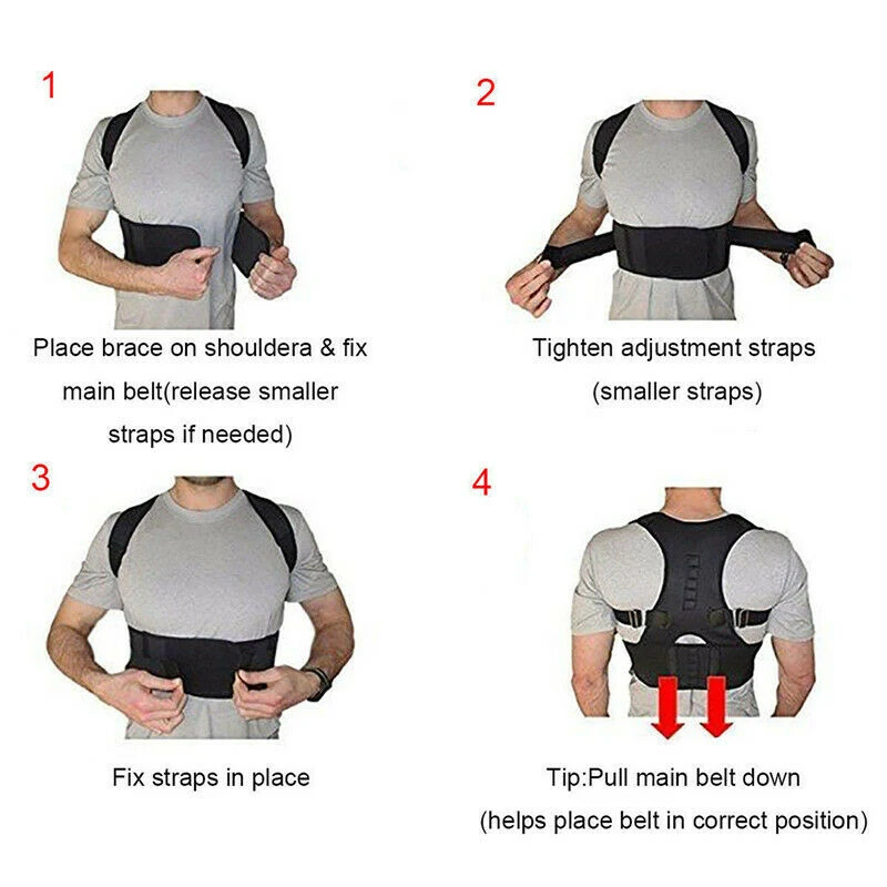 Регулируемые ремешки для комфорта, помогают вытянуть плечи назад, чтобы стоять в высоту и сидеть прямо