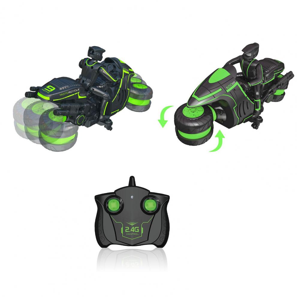 Мотоцикл с дистанционным управлением имеет дизайн вращения на 360 градусов, который может обеспечить несколько способов воспроизведения.