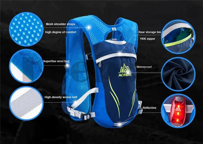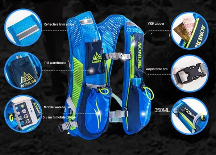 -Подходит вам хорошо: эргономичная дизайнерская сумка в форме жилета поставляется с регулируемым ремнем на талии и высоким эластичным нагрудным ремнем, два размера на ваш выбор. Этот рюкзак используется для пеших прогулок. Подходит практически для всех видов активного отдыха, таких как бег, езда, кемпинг, марафон и т. д.