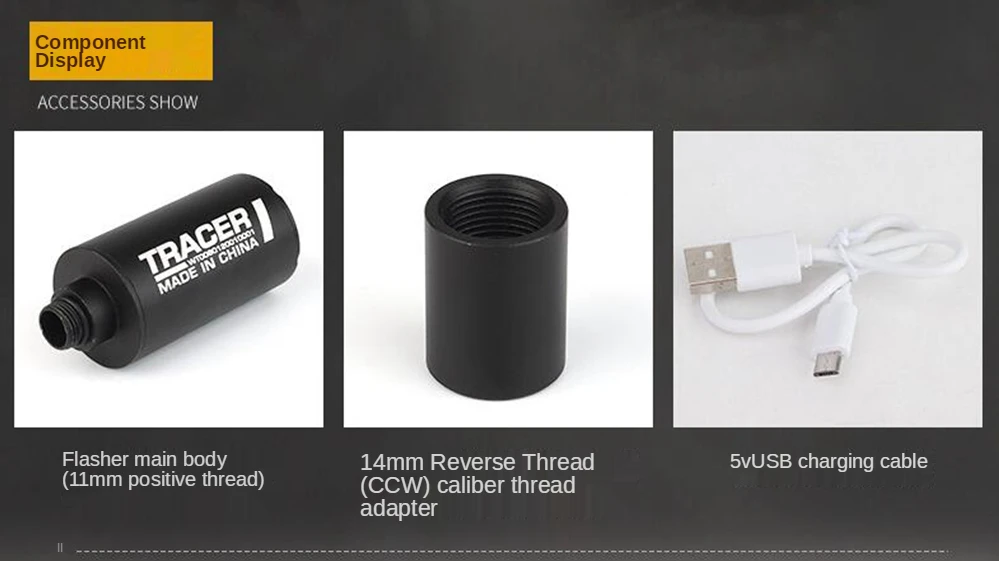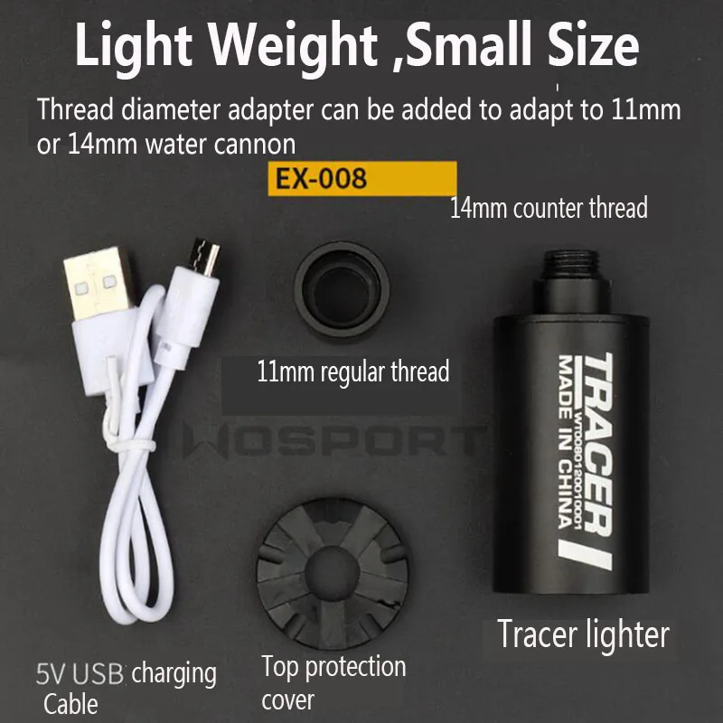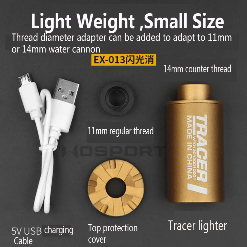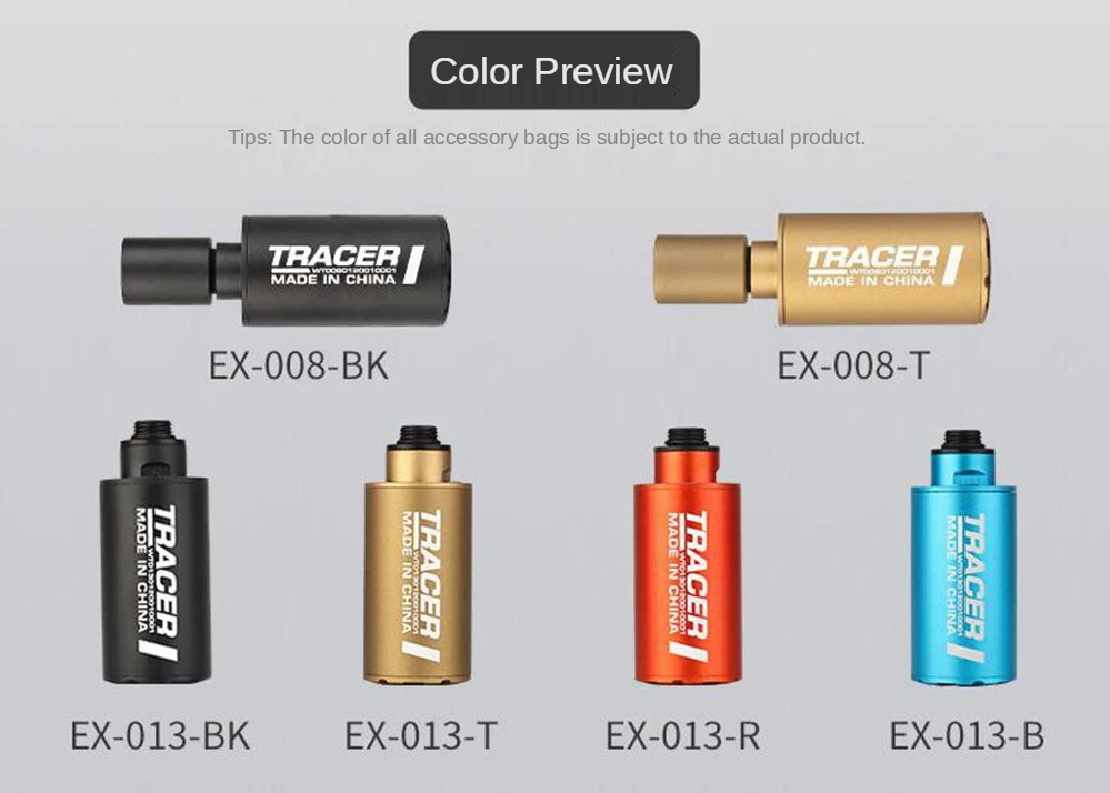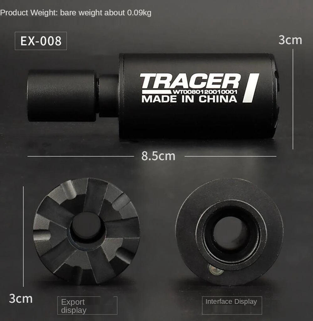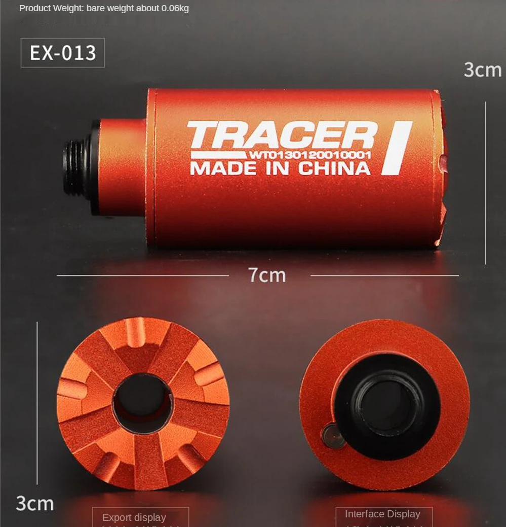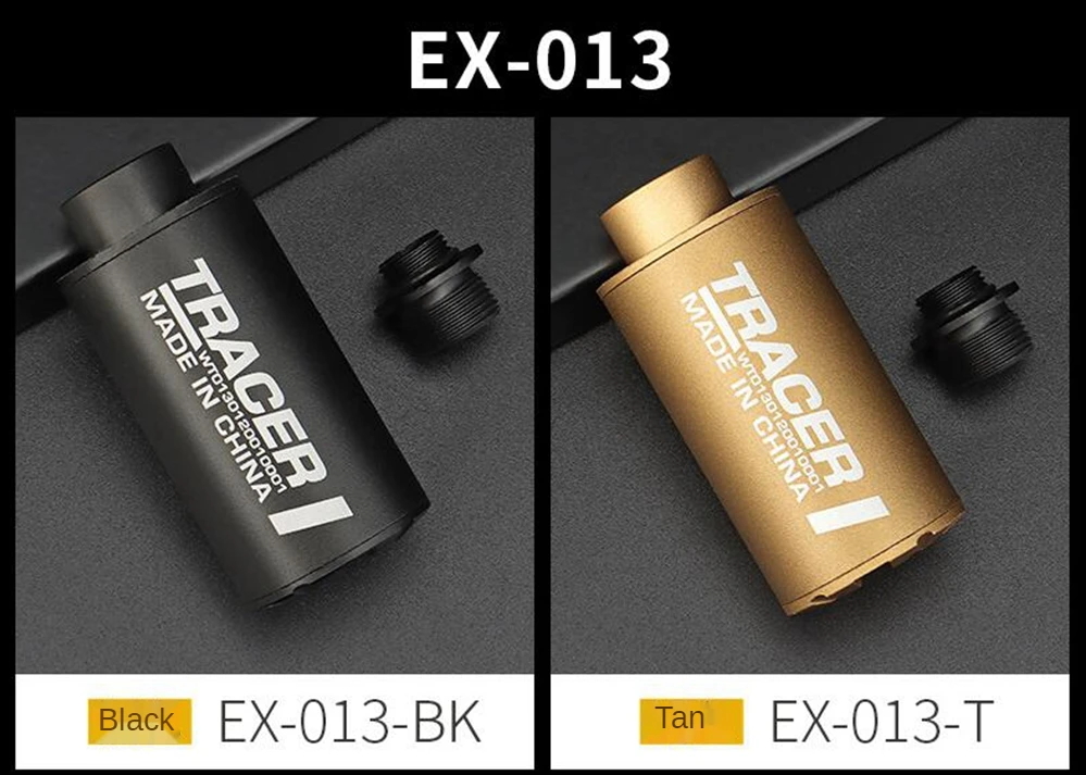 Номер товара: EX-013 Размер изделия: 3 см * 7,5 см Вес брутто продукта: 50 г Аксессуары для продукта: Резьбовой Адаптер Встроенный аккумулятор: Встроенный литиевый аккумулятор с объемом 250 миллиампер Основной материал: алюминиевый сплав Название продукта: WST Airsoft Auto Tracer Номер товара: EX-008 Размер изделия: 2,9 см * 8,5 см Вес нетто продукта: 60 г Аксессуары для продукта: 14 мм минус резьба CCW Цвет изделия: BK/TAN Встроенный аккумулятор: Да Основной материал: алюминиевый сплав