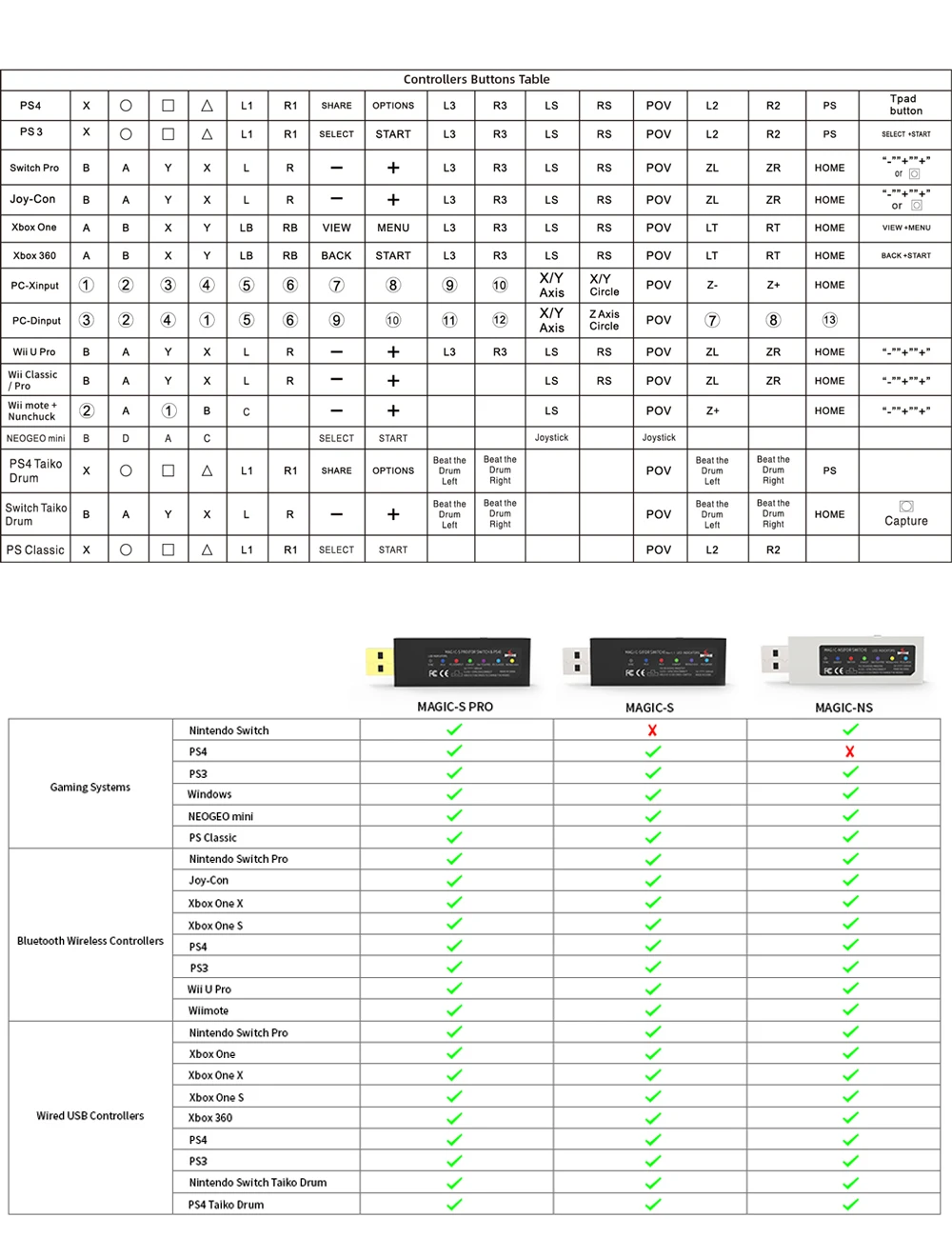 Совместимость контроллера:-Для контроллеров Bluetooth: для Xbox для контроллера Bluetooth, для DualShock 3, для DualShock 4, для DualShock 4 Pro, для Wii mote, для Wii U Pro, для переключения для Joy-Cons, для проводных usb-контроллеров Switch Pro: Беспроводной контроллер, который поставляется с вашей консоли, станет проводным контроллером, просто подключив Стандартный usb-кабель (за исключением Xbox 360, для которого требуется официальный проводной контроллер Microsoft для Xbox 360). Для достижения наилучших результатов рекомендуется использовать оригинальный для контроллеров Nintendo doswitch или подлинный для Xbox или для контроллеров PlayStation и сертифицированных по качеству usb-кабелей.