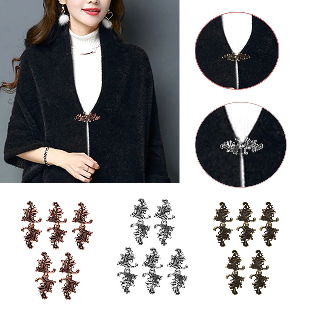 5 пар, унисекс, винтажный кардиган, заколки, ассиметричные, акантус, лист, для одежды, значки, сделай сам, платье, топ, жилет, декоративные пряжки