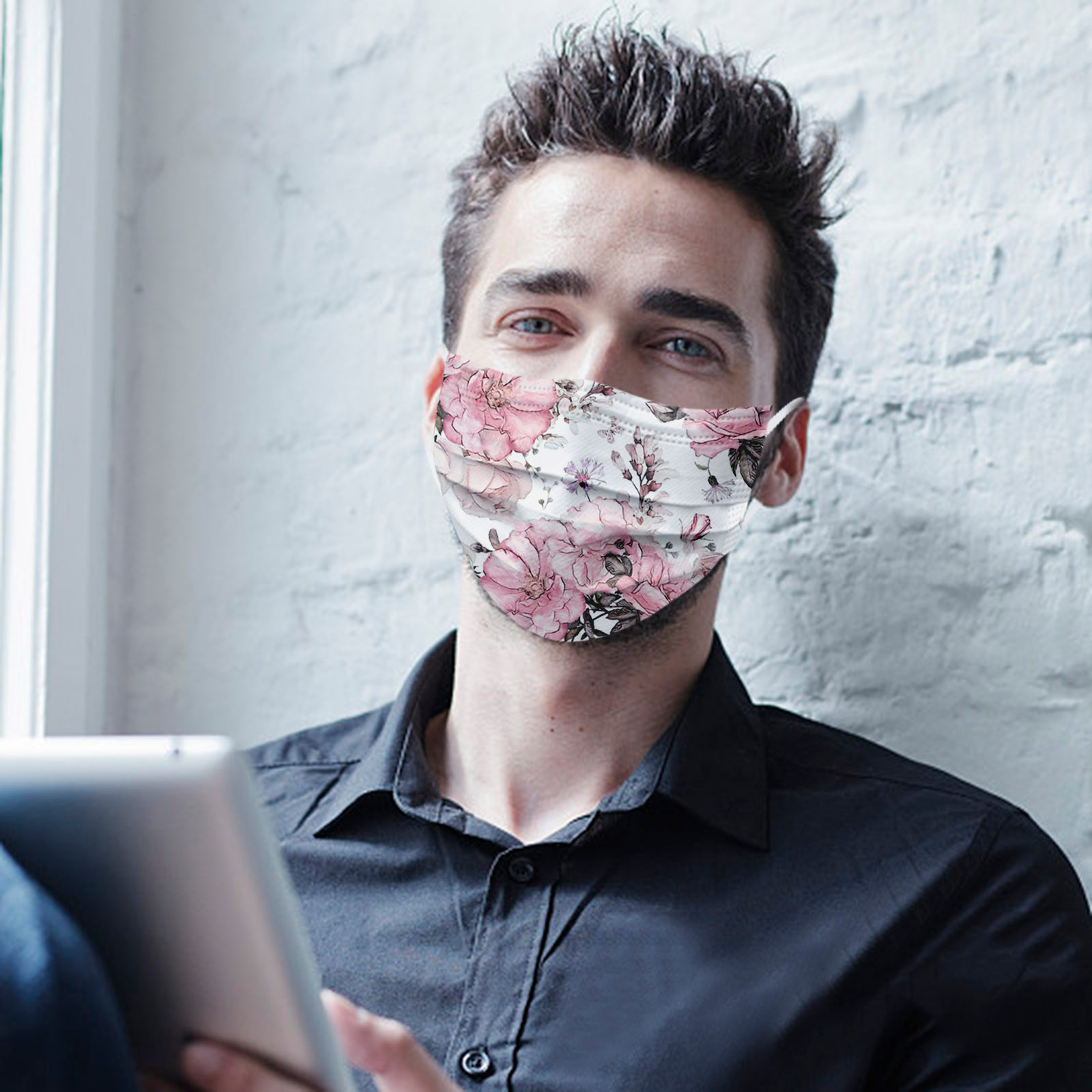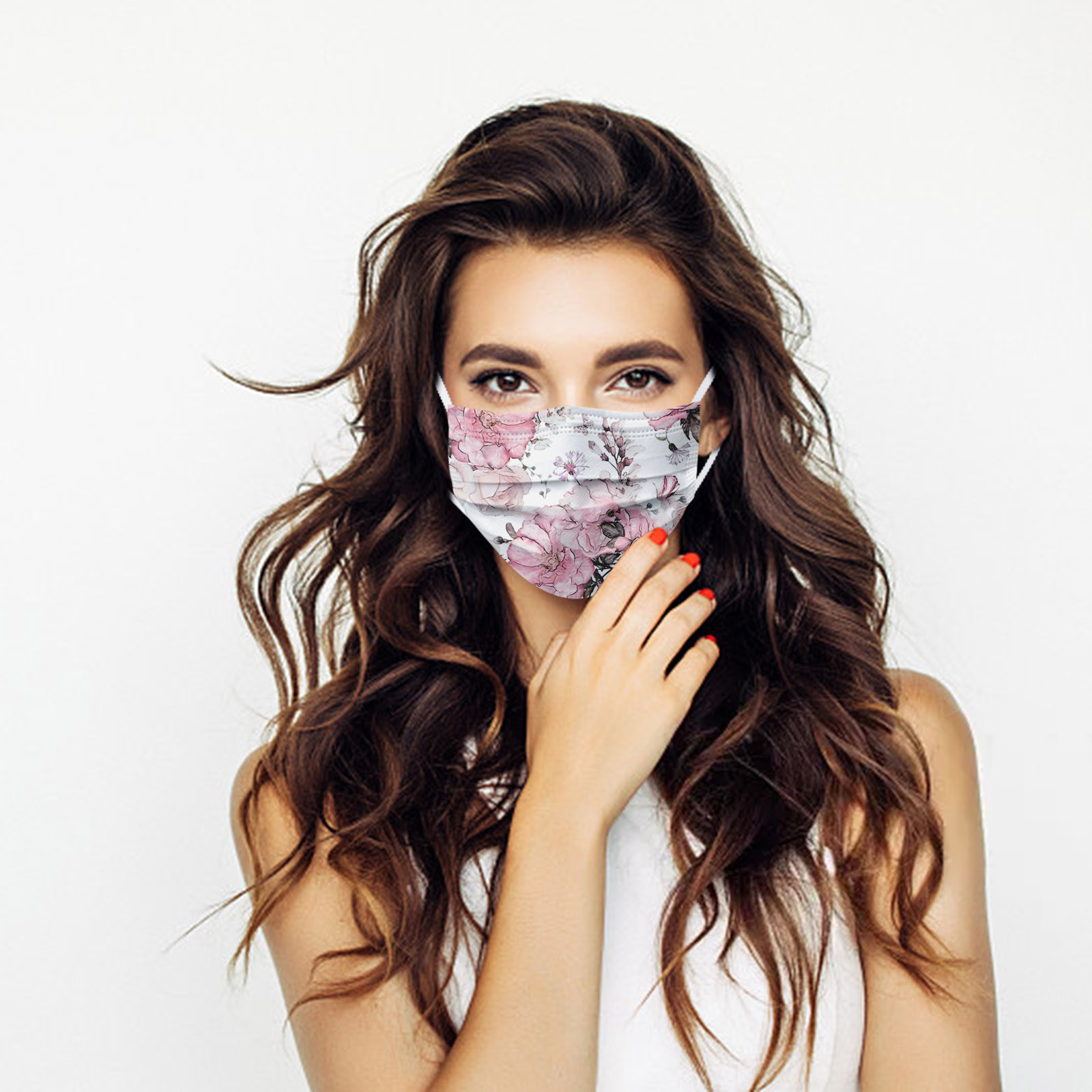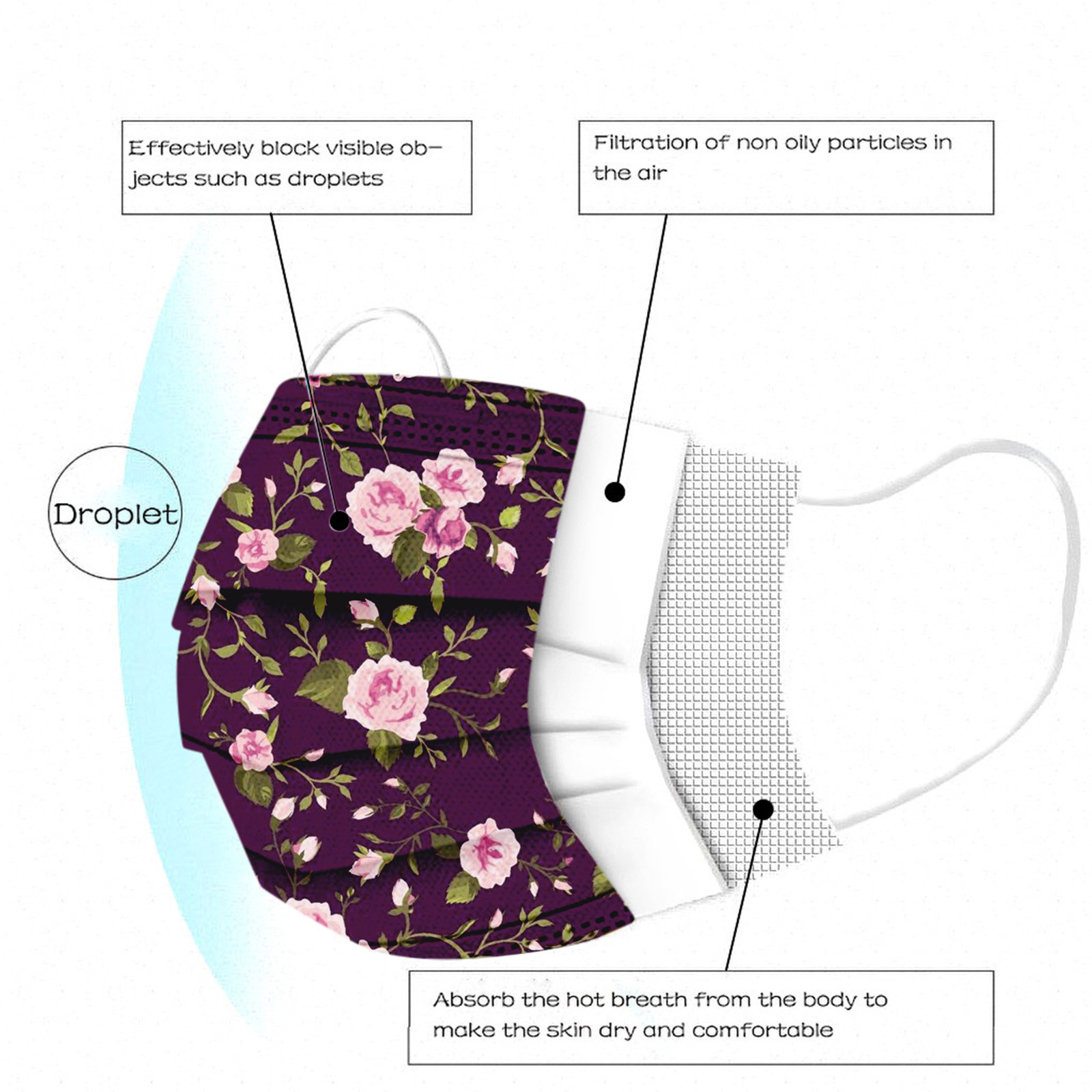 В 3 слоя Нетканая одноразовая маска изготовлена из 3 слоев нетканого материала, Безопасен и безопасен для использования. Дышащий материал и милый Узоры, которые делают его полезным и модным. Специальный 3 слоя из нетканого материала Дизайн, обеспечивает некоторую защиту от пыли, автомобильных выхлопных газов, Пыльца и т. д. эластичная Ушная петля, легко носить и не давит на уши. Маникюрный салон или любые другие области, где может потребоваться защита