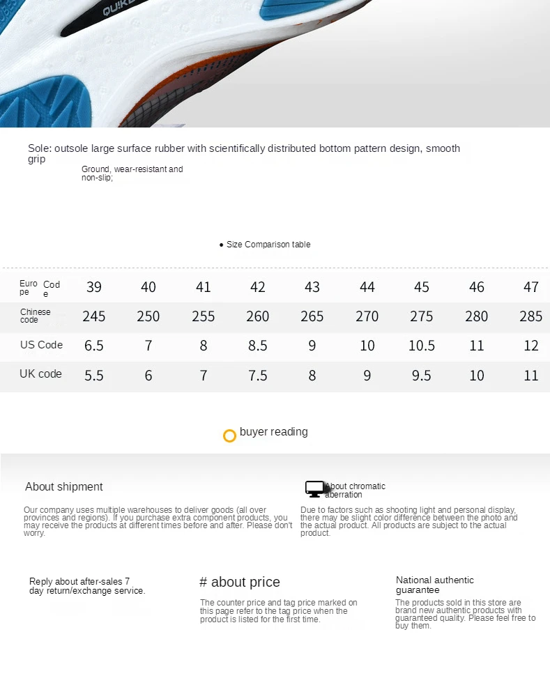1. Пожалуйста, выберите размер по длине вашей стопы! Длина стопы составляет cmмиллиметр) 2. Встаньте прямо на бумаге, отметьте точки самого длинного носка и пятки. Длина двух точек-длина стопы 3. Левая и правая ноги будут немного отличаться по длине, Пожалуйста, измерьте больший размер 4. Если ноги толстые или широкие, Пожалуйста, выберите на один размер больше. Советы: 1. Протрите кроссовки влажной тканью. Не мойте их непосредственно водой. 2. Избегайте погружения, высокой температуры и прямых солнечных лучей, чтобы избежать обесцвечивания и искажений. 3. Избегайте контакта с острыми и коррозионными химическими веществами. 4. После использования, пожалуйста, положите его в прохладное место, чтобы сушить на воздухе, чтобы убедиться, что обувь сухая и чистая. 5. Обувь для бадминтона рекомендуется для использования в помещении. Примечание: вся обувь будет отправлена без «обувной коробки», если вам действительно нужно, пожалуйста, свяжитесь с нами, оплатите дополнительную плату, спасибо за такие факторы, как освещение и дисплей, там будет некоторая разница в цвете. Пожалуйста, примите получение объекта