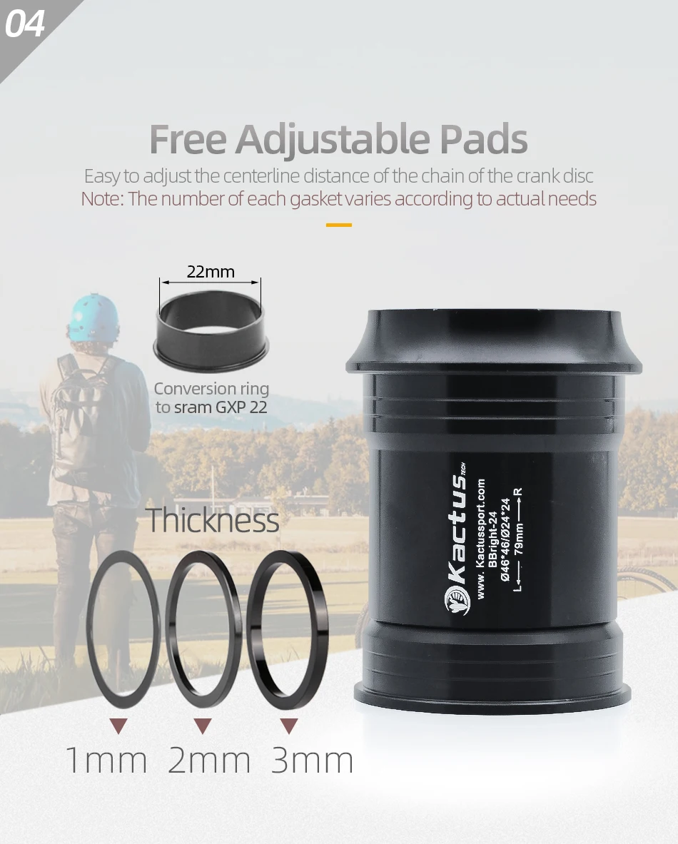 Подходит для:Shimano полный спектр коленчатых комплектов, SRAM GXP дорожный велосипед или MTB коленчатый набор, ротор 3D24,Aldhu24 коленчатый набор и другой бренд коленчатого набора с диаметром вала 24 мм.