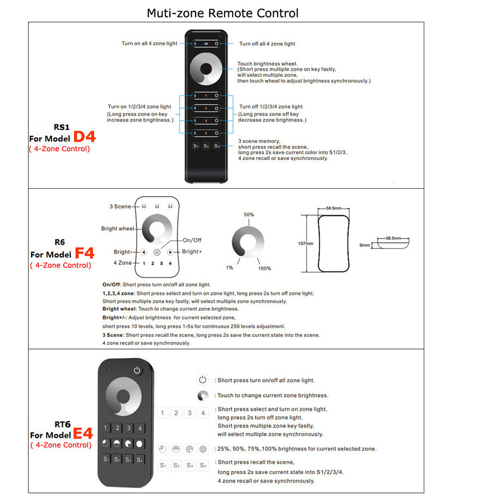 ● Один RF Диммер может принять до10Пульт дистанционного управления.