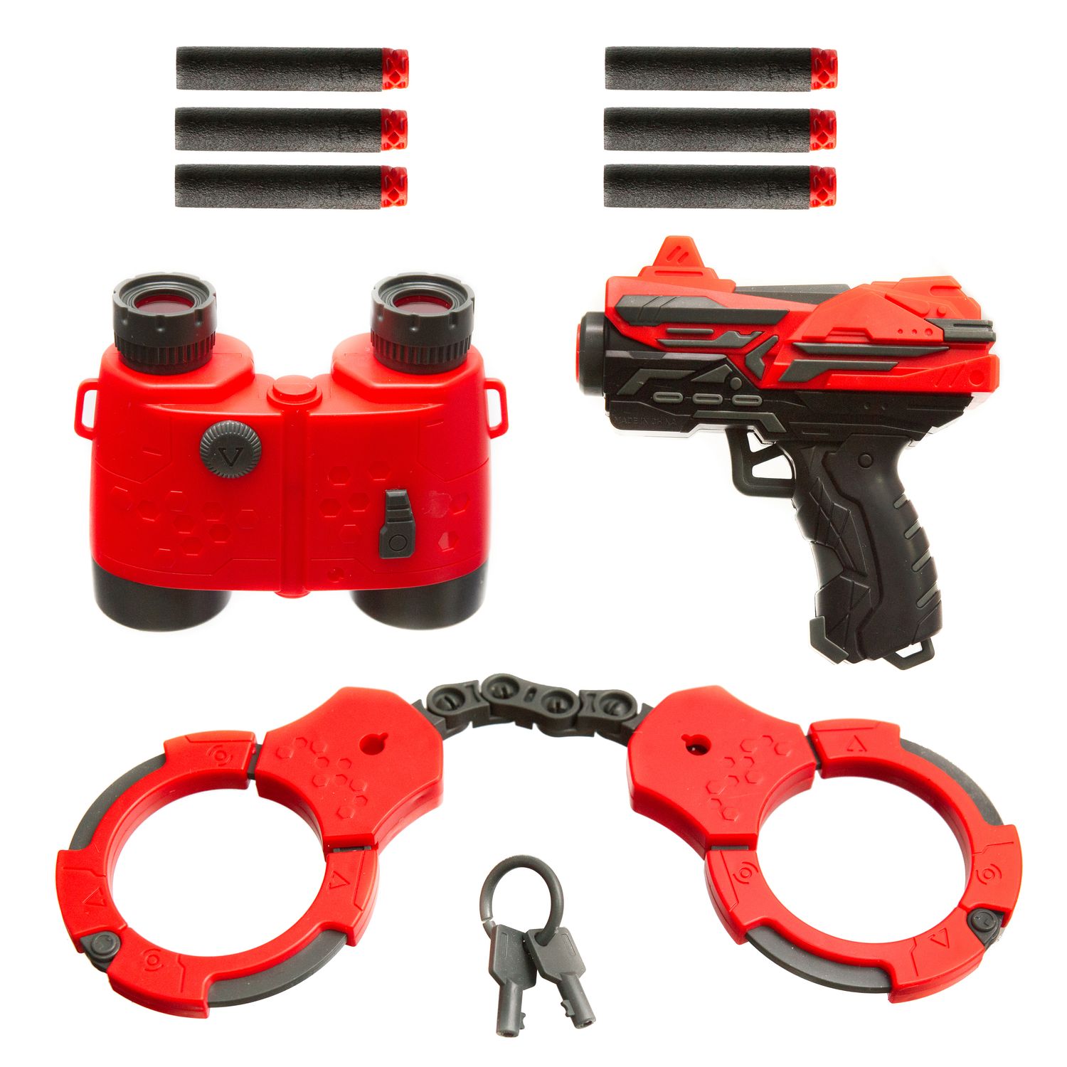 В комплекте: 6 мяг.пуль, наручники, ключи, бинокль