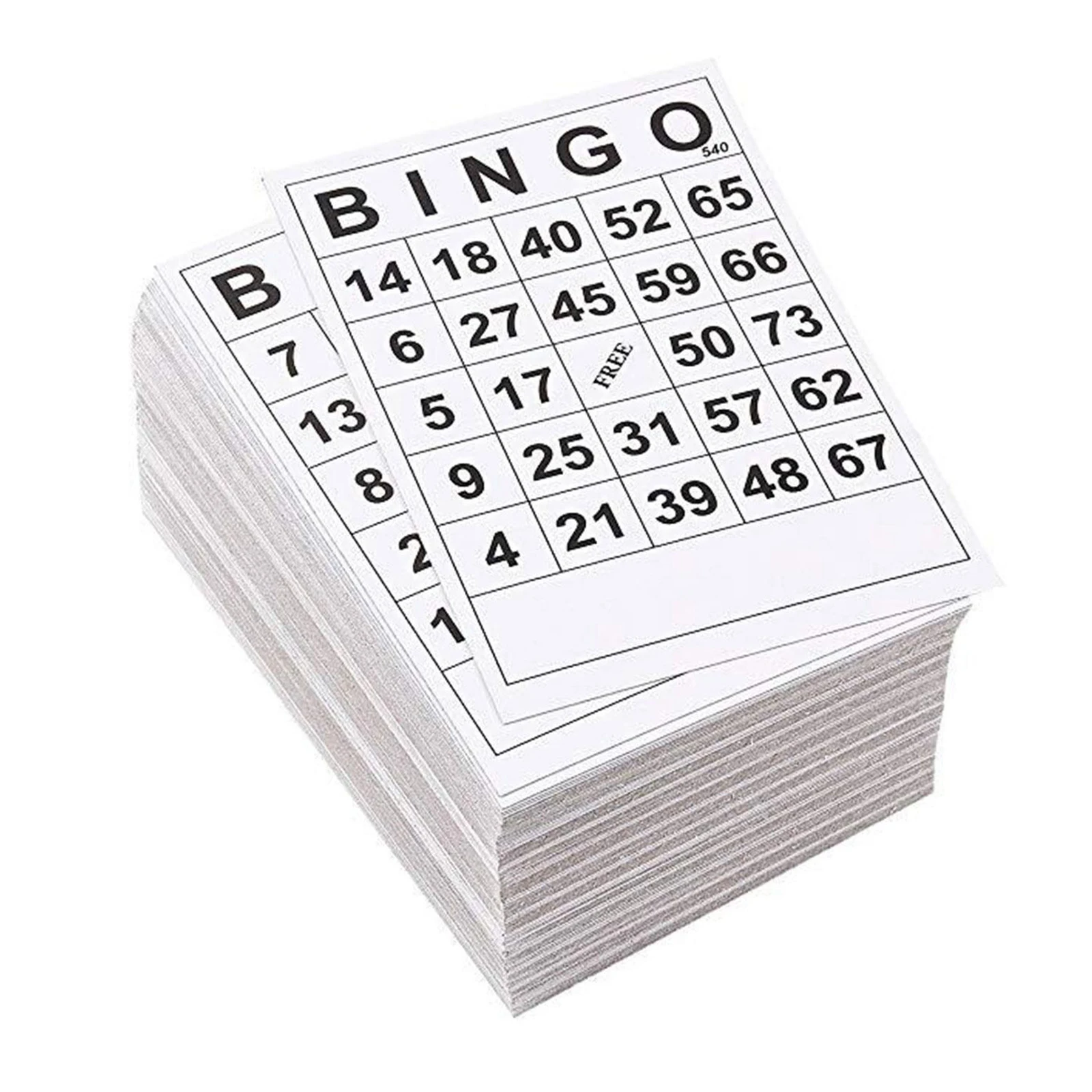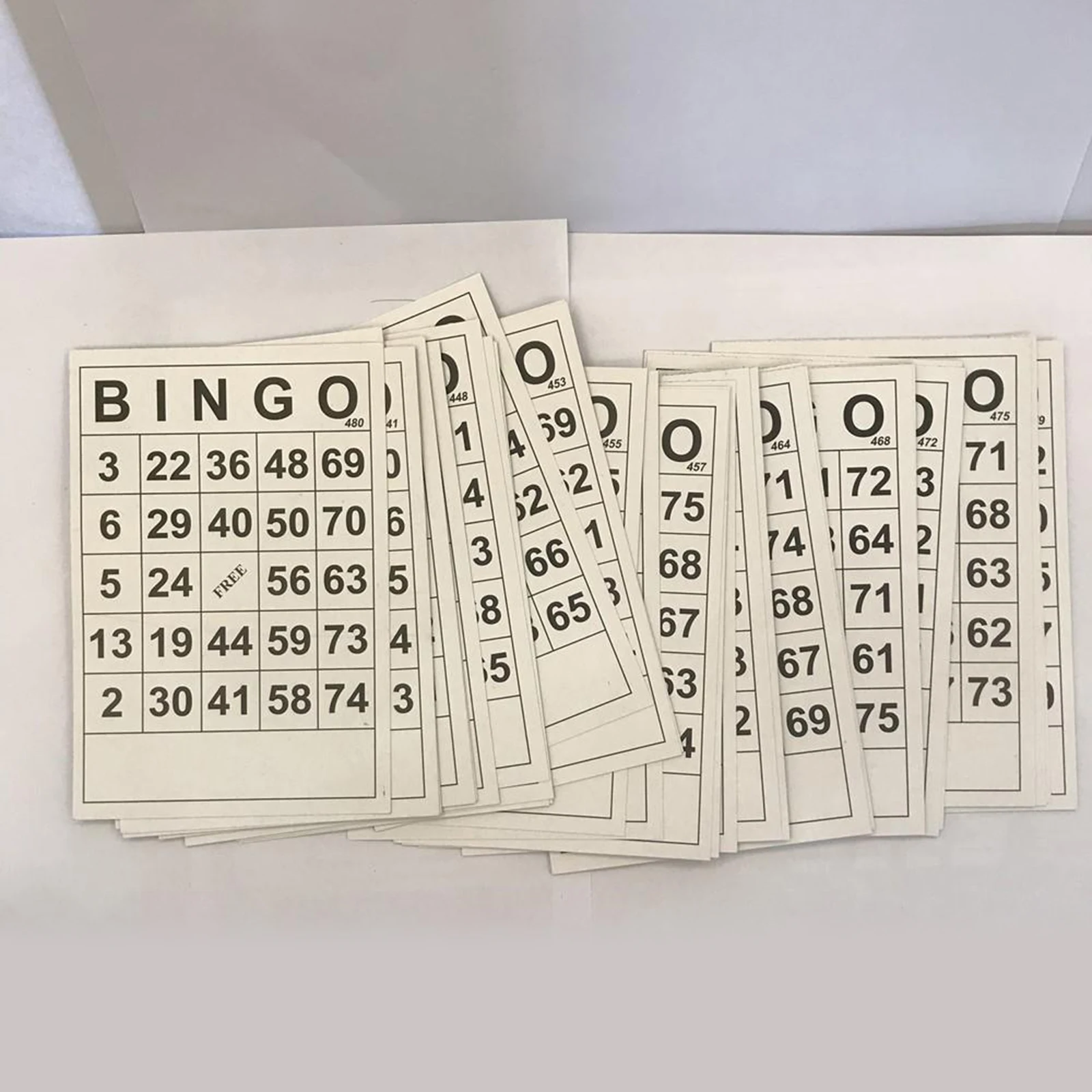 Диапазон Количества этих бумажных карт для бинго составляет 0-75, а количество каждой бумаги составляет 481-540, что позволяет быстро идентифицировать их во время игры.