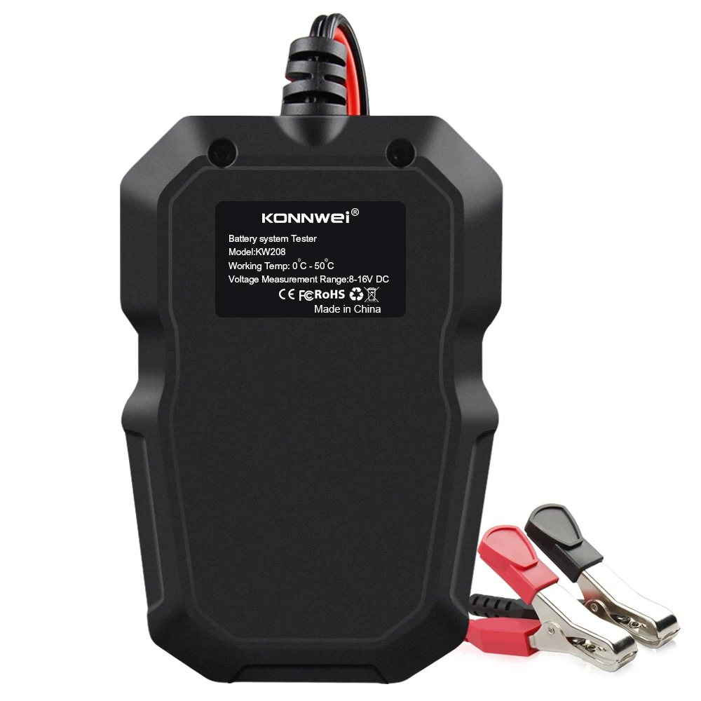 1.[мульти-функции]: тест батареи KONNWEI KW208 включает тест батареи, тест на проворот коленвала, функции тестирования зарядки. В основном предназначены для анализа состояния здоровья батареи. Он непосредственно определяет, хороший или плохой аккумулятор, и представляет предлагаемые решения.