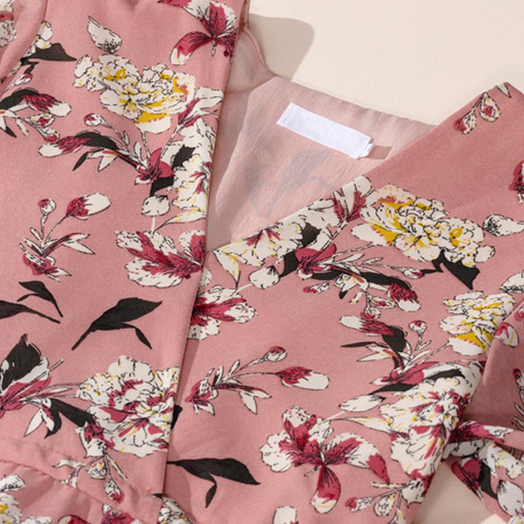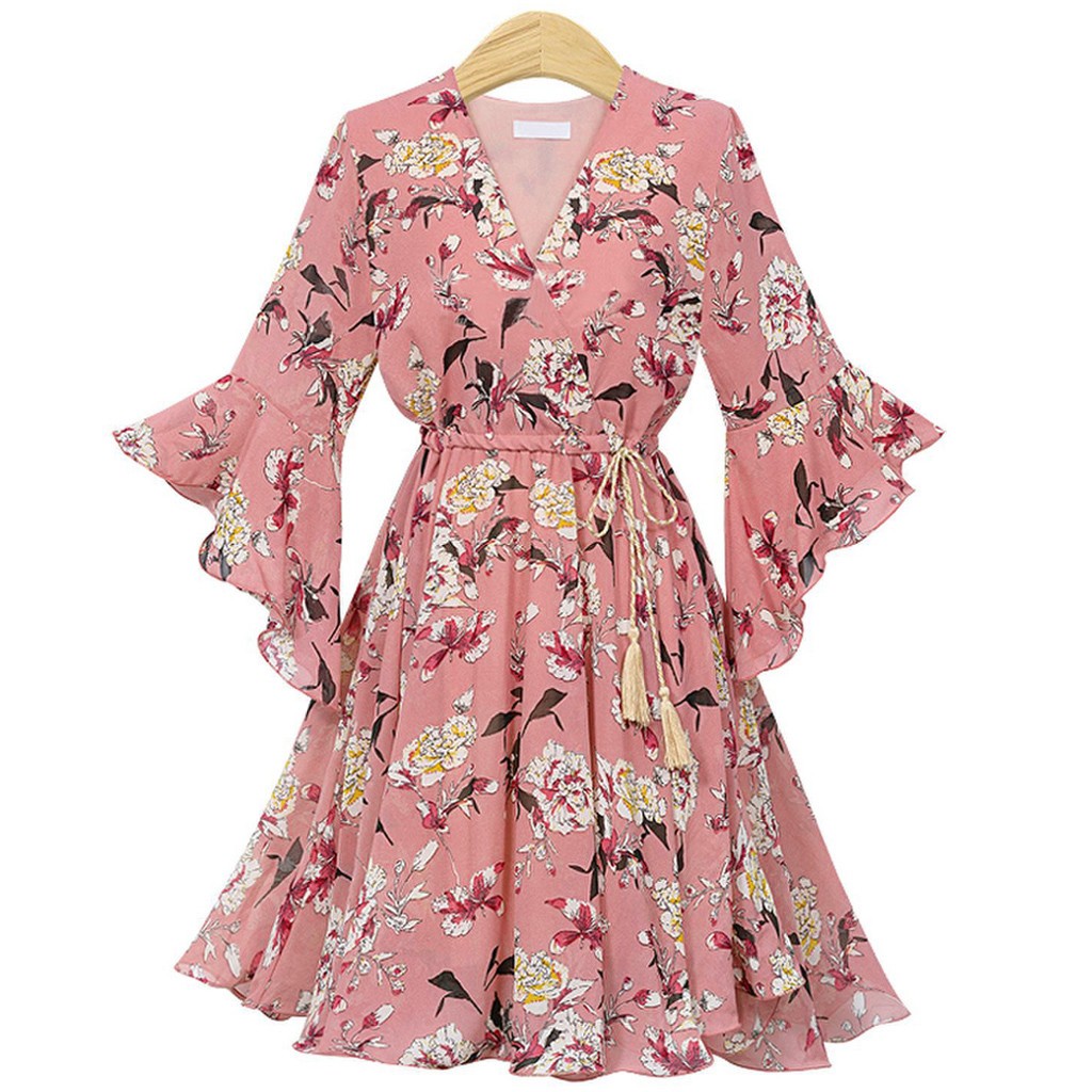 Женские модные повседневные шифоновые вечерние Платья с цветочным принтом и коротким рукавом с v-образным вырезом