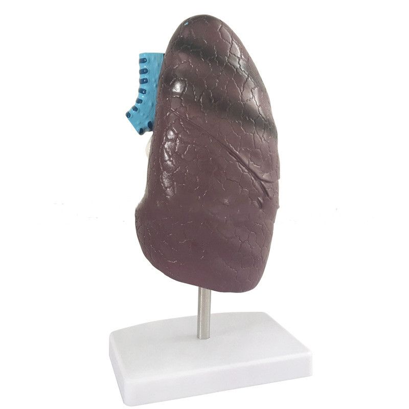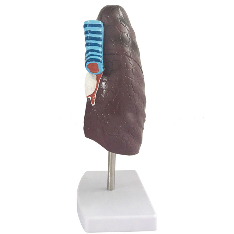 Эта 1 часть, модель 2/3 в натуральную величину, показывает некоторые заболевания, вызванные микробными инфекциями (легочные абсцессы (язва), легочные (воспаление) и бугорезы) и сстебля легких. Поверхность модели черная, чтобы показать видимый эффект курения. Рак отека (опухоль) также показывает хорошие детали. Все болезни показывают, что модель представлена в форме и реальности.