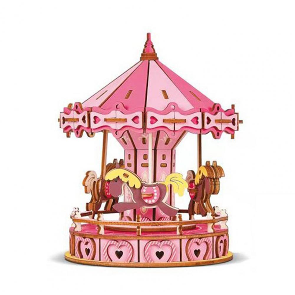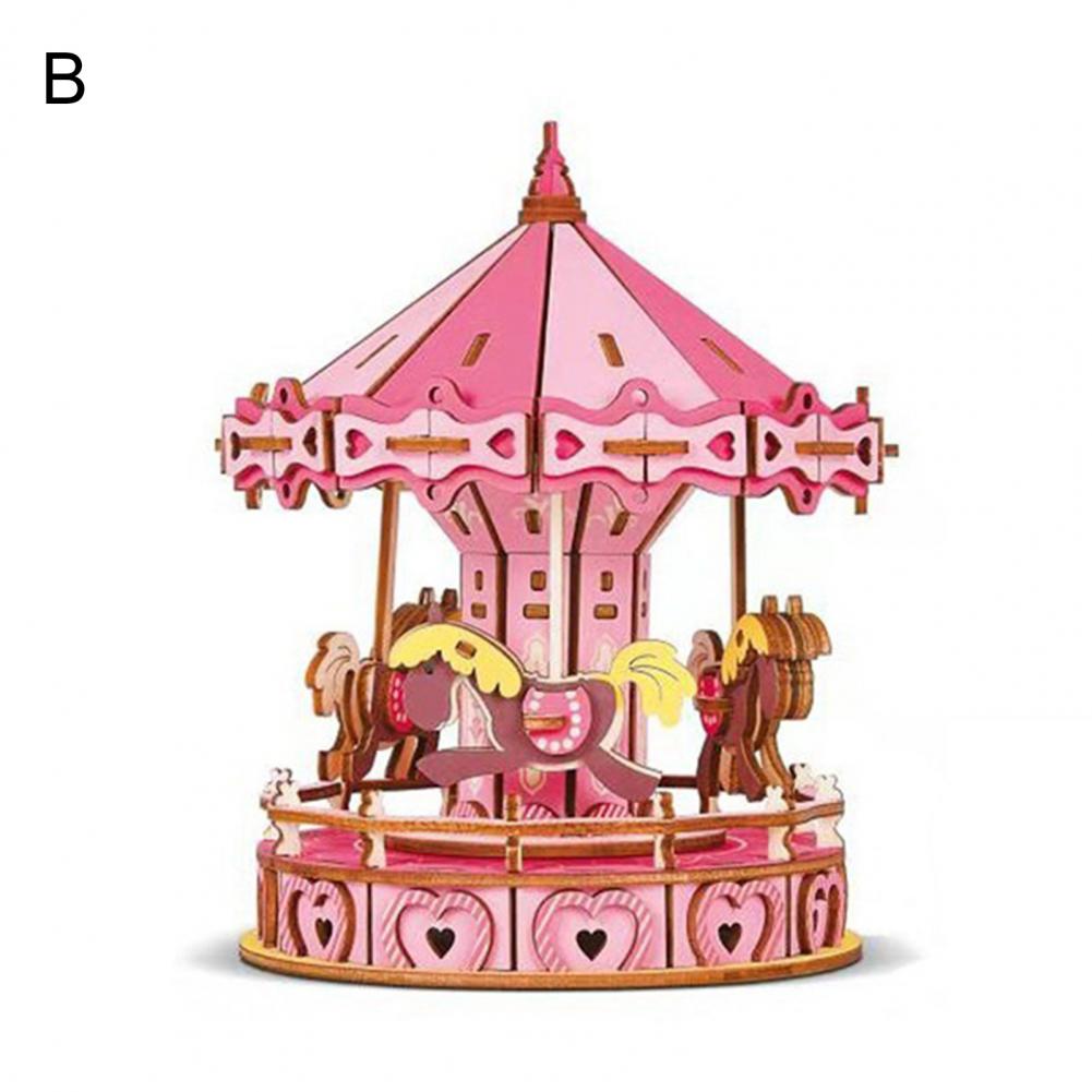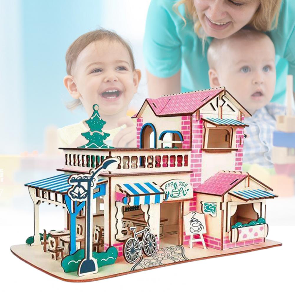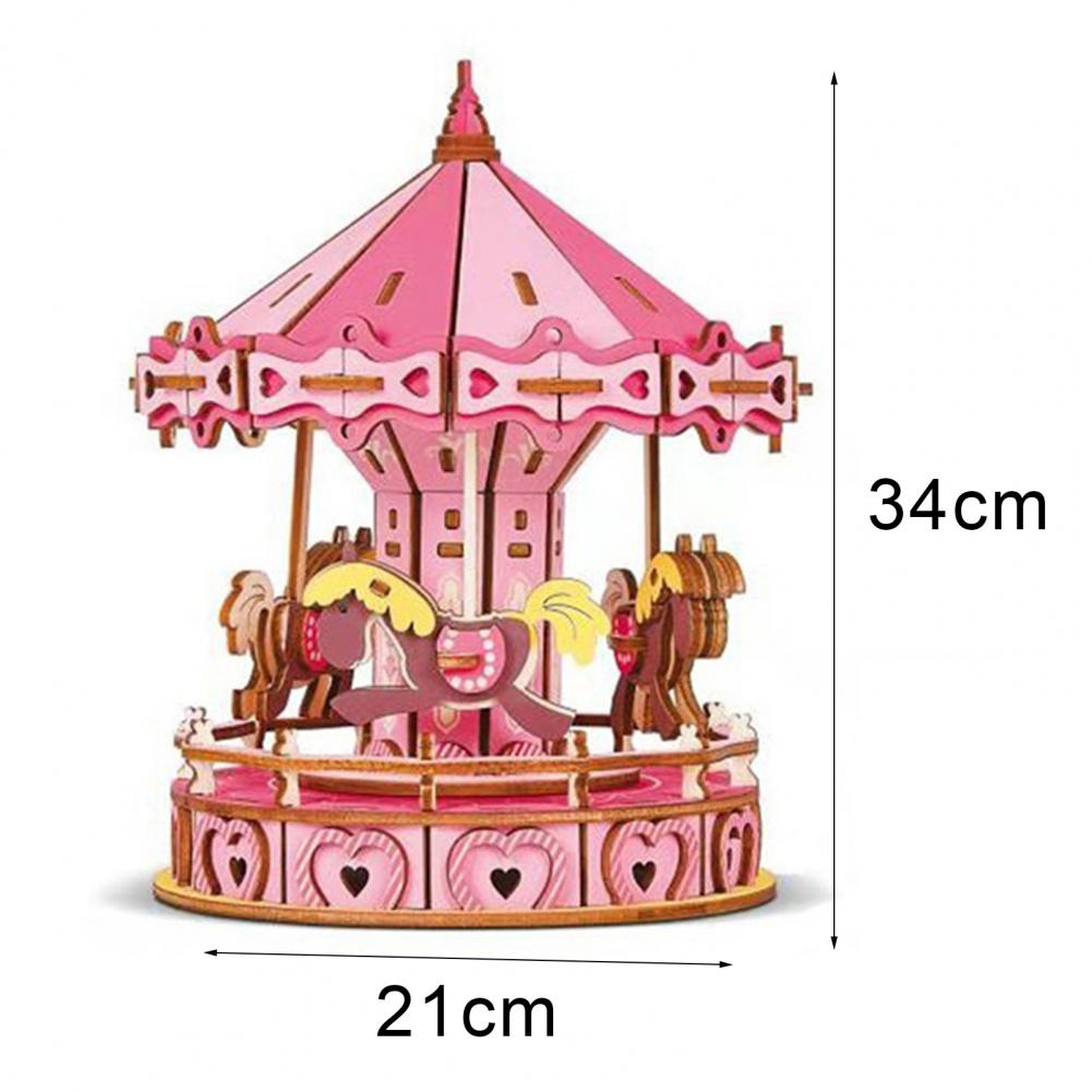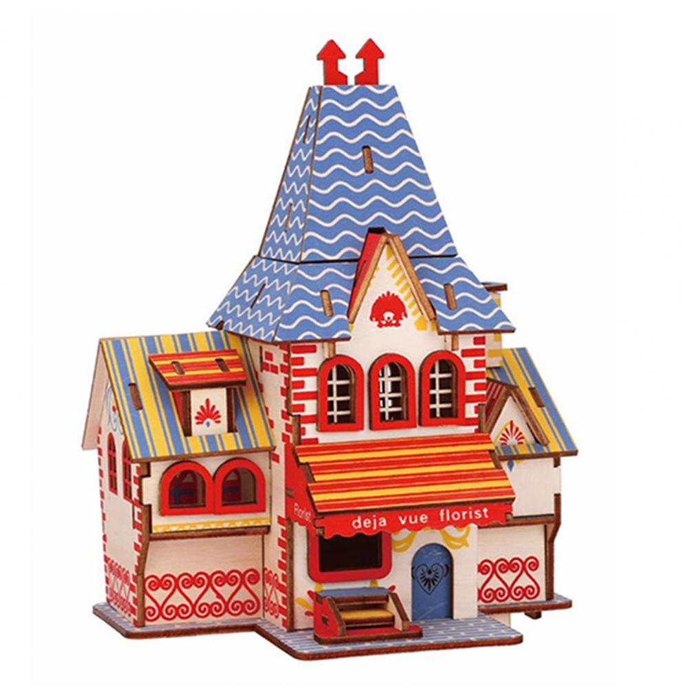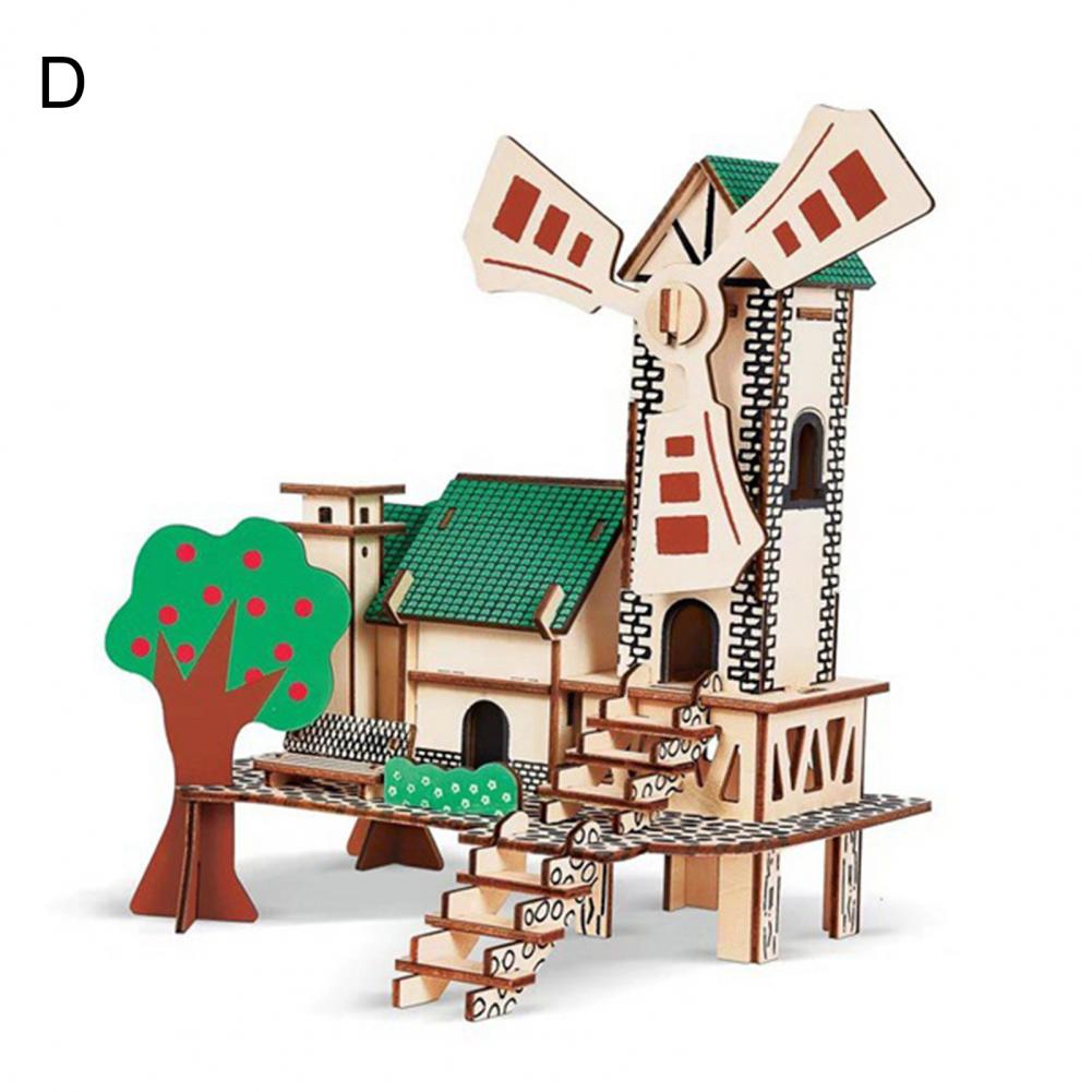 Деревянные пазлы привлекают внимание детей из-за трехмерного цветного колеса обозрения, карусели или архитектурного дизайна дома,