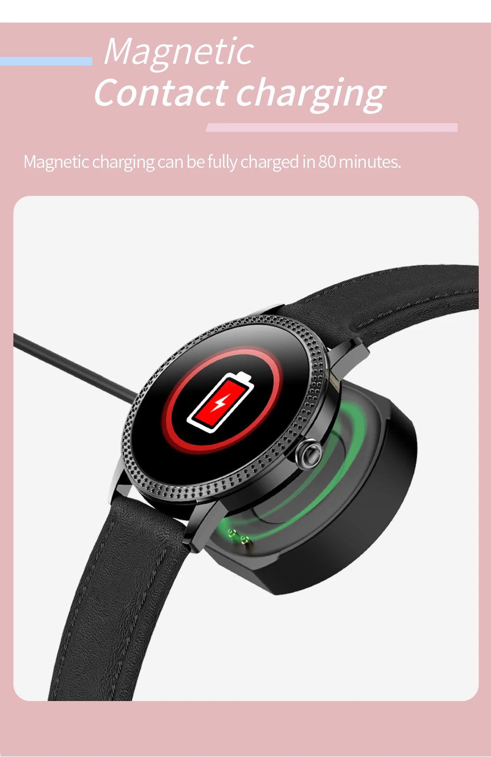 Magnetic charging can be fully charged in 80minutes.