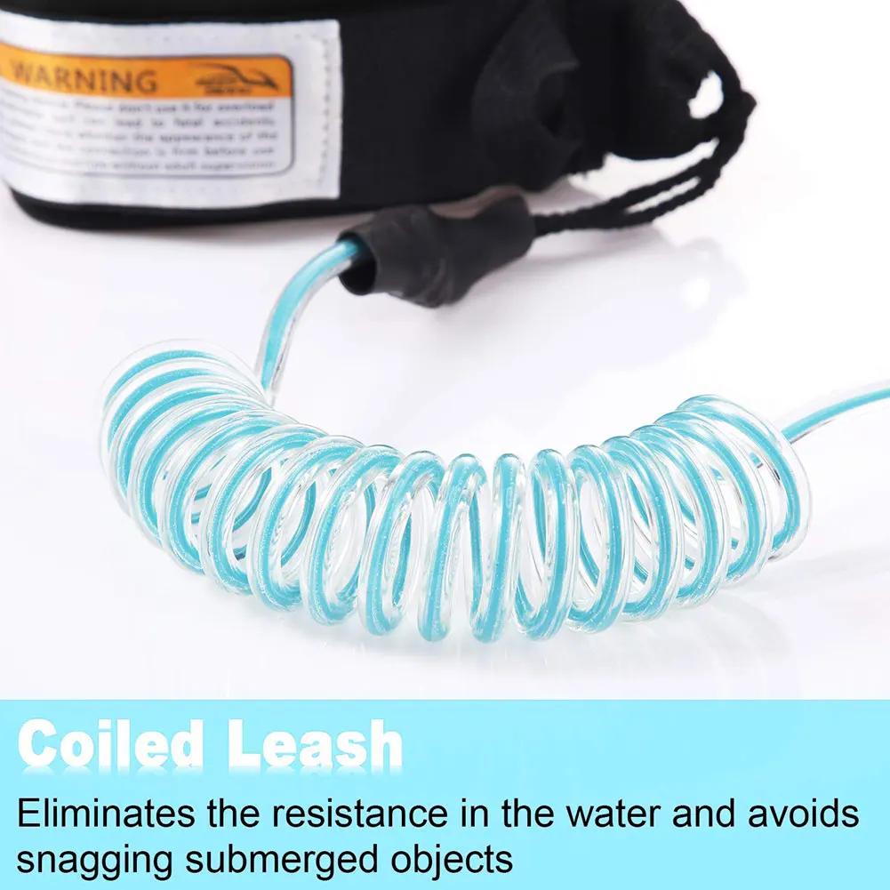 Поводок для серфинга изготовлен из сверхпрочных 5 мм шнуров из ТПУ с регулируемыми ремешками на лодыжках. Наша Тяговая веревка для серфинга имеет максимальную длину удлинителя 22 дюйма, которая является прочной и долговечной. Удобный ремешок на щиколотке подходит для любого размера, подходит для мужчин и женщин. Эта спиральная доска-светильник, гибкий, подходит для серфинга и т. Д.1 * поводок для серфинга