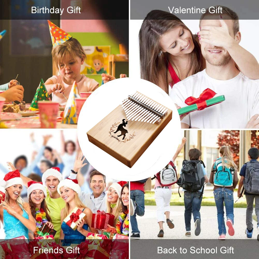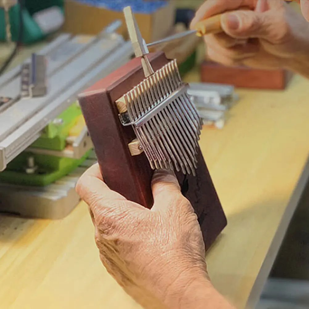 Калимба выбирает резьбу на каждом зубе, более интуитивно понятный и более легкий для обучения детей и новых новичков. Вы получите подробную учебную брошюру для обучения, как играть калимба. Просто нажмите клавишу с помощью большого пальца ногтей и отпустите, вибрации резонируют в деревянном теле, чтобы сделать туннельный звук. Прилагается инструкция, каждый может легко играть на этом пальце пианино.