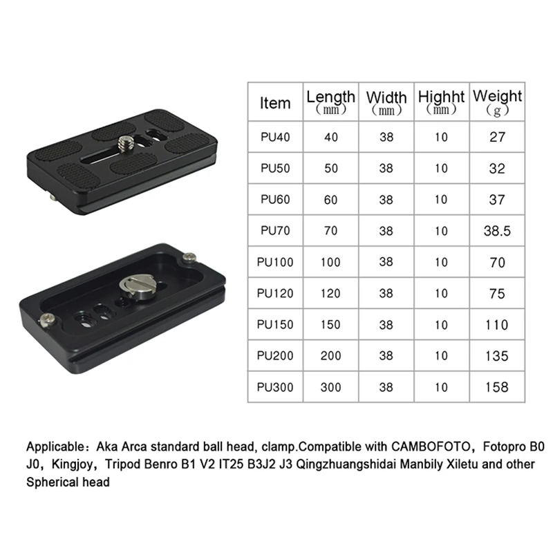 Универсальная БЫСТРОРАЗЪЕМНАЯ пластина XILETU серии PU с винтом 1/4 дюйма для камеры, совместимая с зажимом Arca Style
