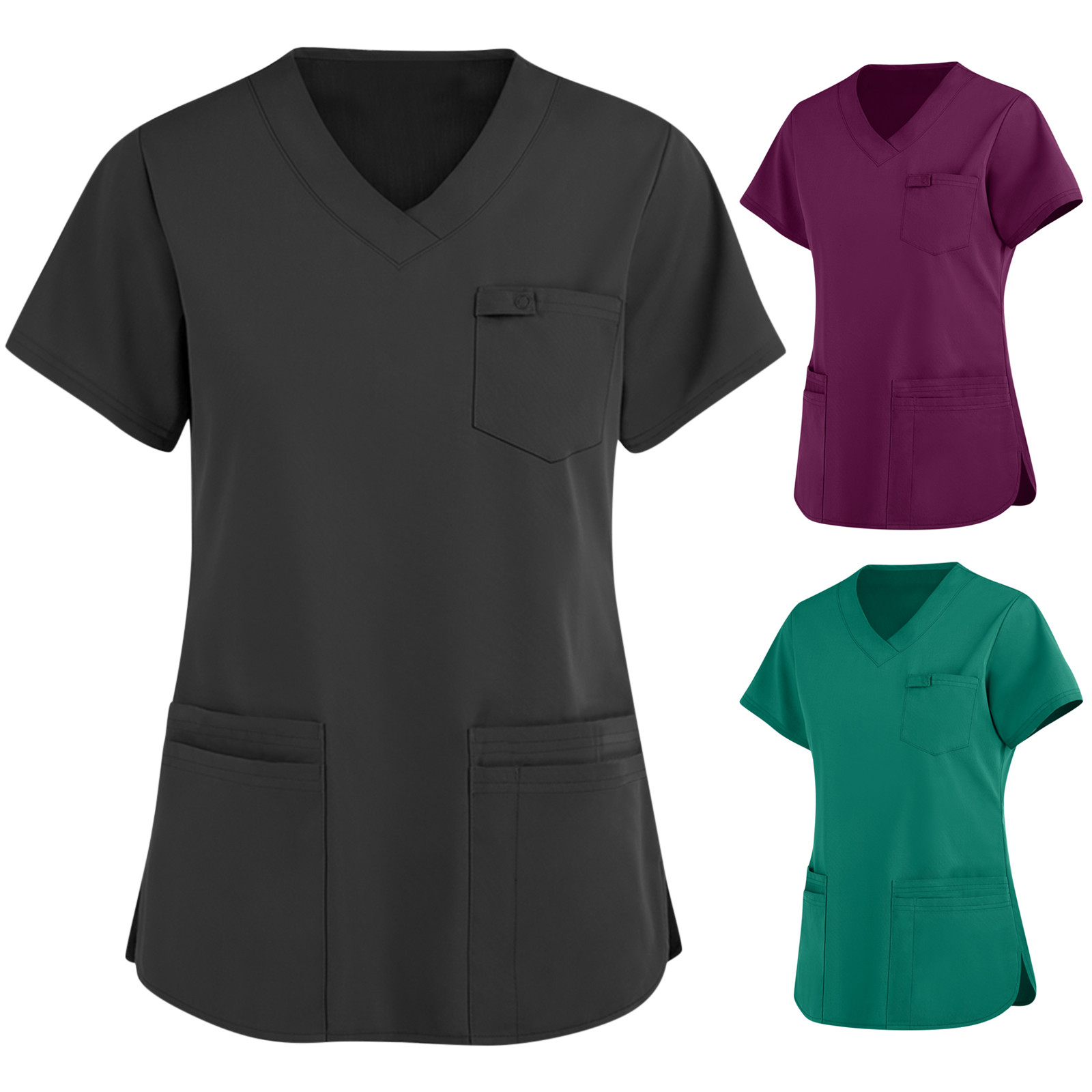 Женская футболка с коротким рукавом с v-образным вырезом и карманом