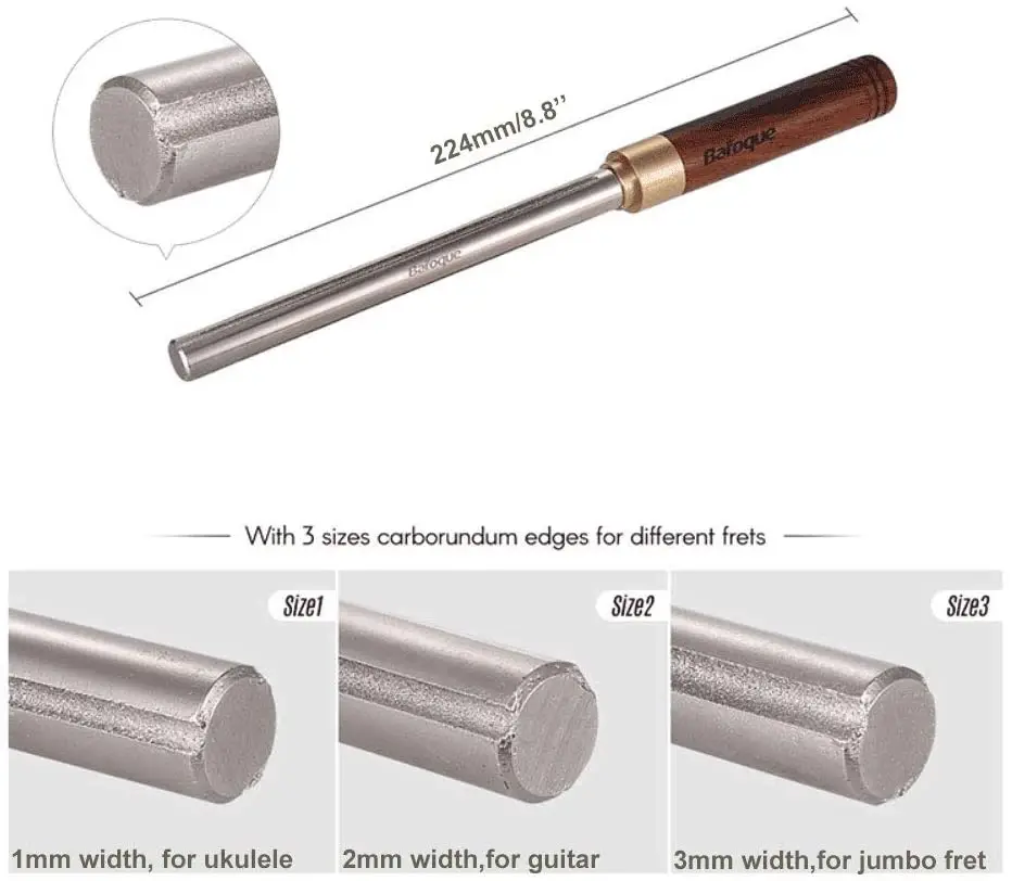 Алмазные шлифовальные напильники для ладов барокко, шлифовальные напильники для коронок гитар, инструменты для ремонта ладов, улучшенные инструменты для ладов 3-го поколения, с 3 размерами для гитар, укулелей, бас, банджо, мандолины.