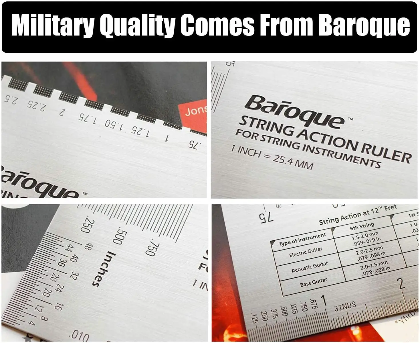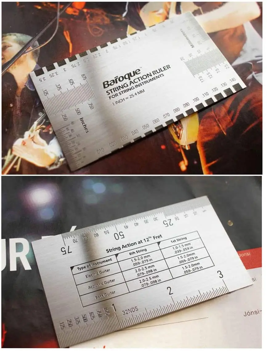 Военное качество, лазерная гравировка, точная и четкая калибровка. Изготовлен из высокопрочной нержавеющей стали, долговечен. На 12-м Ладу-расстояние выгравировано и четко читается, что предоставляет вам набор стандартных данных. В их состав входят: электрогитара, акустическая гитара и бас, видны два блока сравнения групп в том числе дюймы и миллиметр. Подходит для гитары, баса, укулеле, банджо, мандолины и других струнных инструментов. Многофункциональные измерительные инструменты, строка-расстояние, высота и глубина седла моста, глубина паза Лада. Струна-расстояние звукоснимателя электрогитары. Это руководство по ремонту гитары. Инструмент must have для каждого серьезного игрока. Боди карманного размера, вы можете взять его куда угодно. Попрощайтесь со своим тяжелым штангенциркулем.