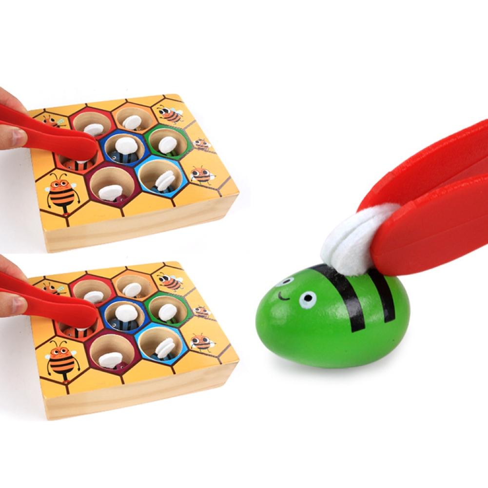 Each bee corresponds to a hive, and children can use tweezers to easily grasp the bees in their own way, so that the bees of the same color can return to the same hive, this will carry out comprehensive development exercises through motor skills to enhance children's sensory stimulation.
