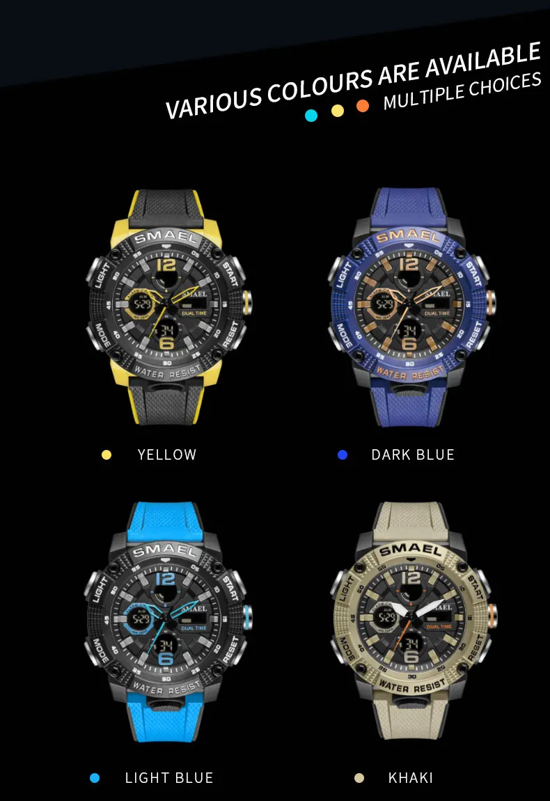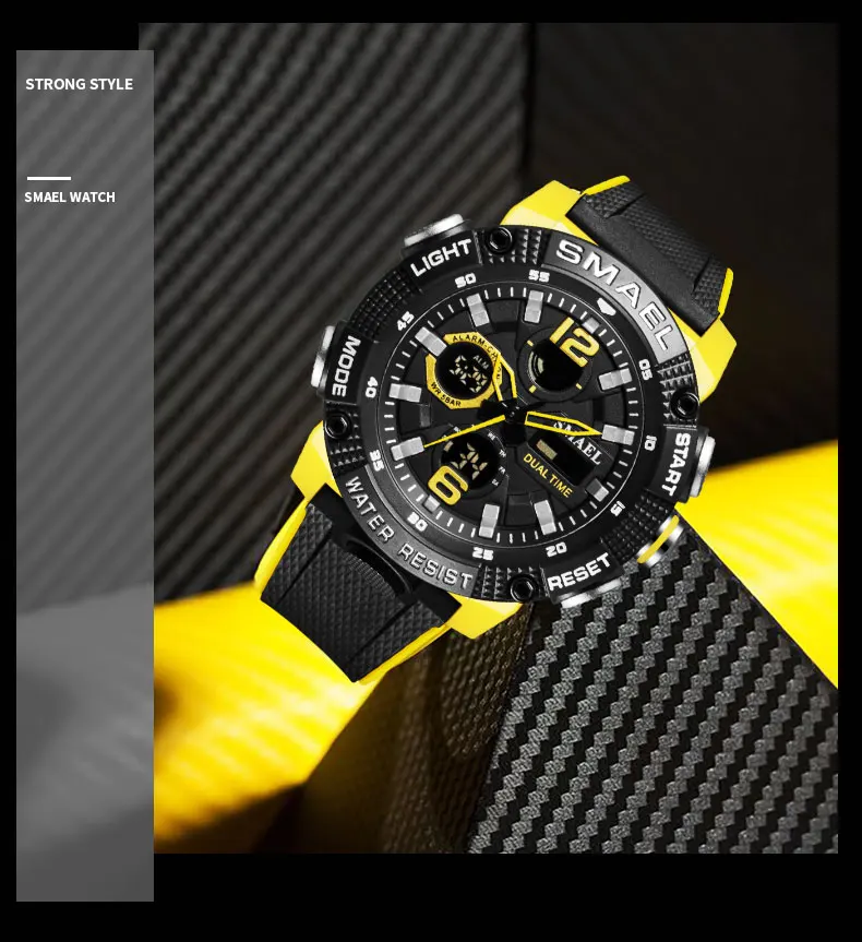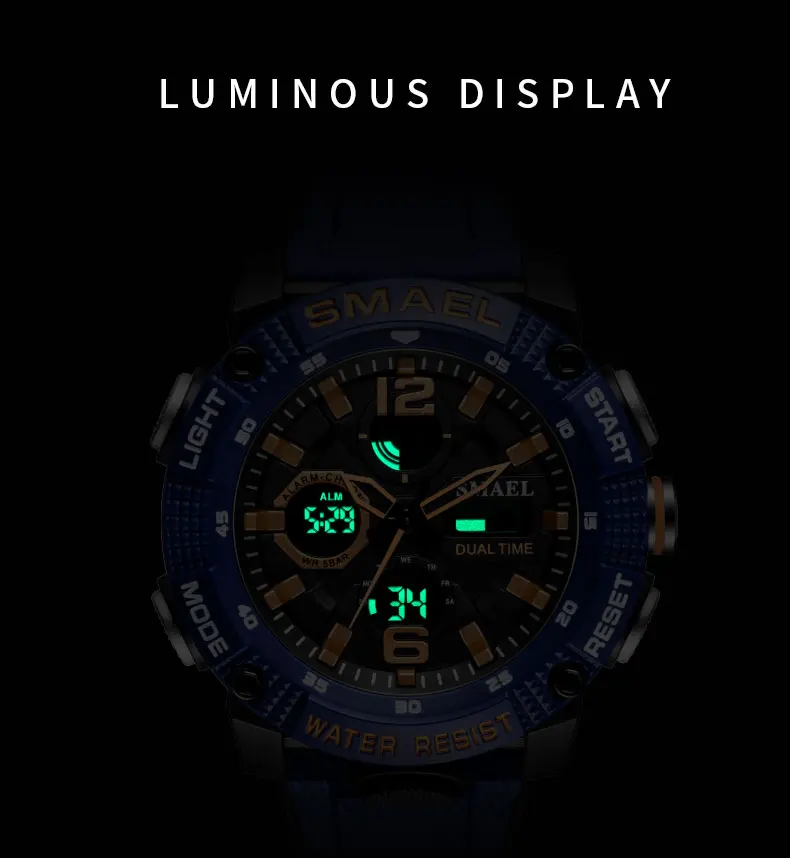 Спортивные часы SMAEL 8039-удобные и стильные часы, идеальная идея для повседневной носки или фитнеса. Водонепроницаемость до 50 метров, не волнуйтесь, тренируясь в бассейне. Есть светящийся свет для просмотра времени в темноте.